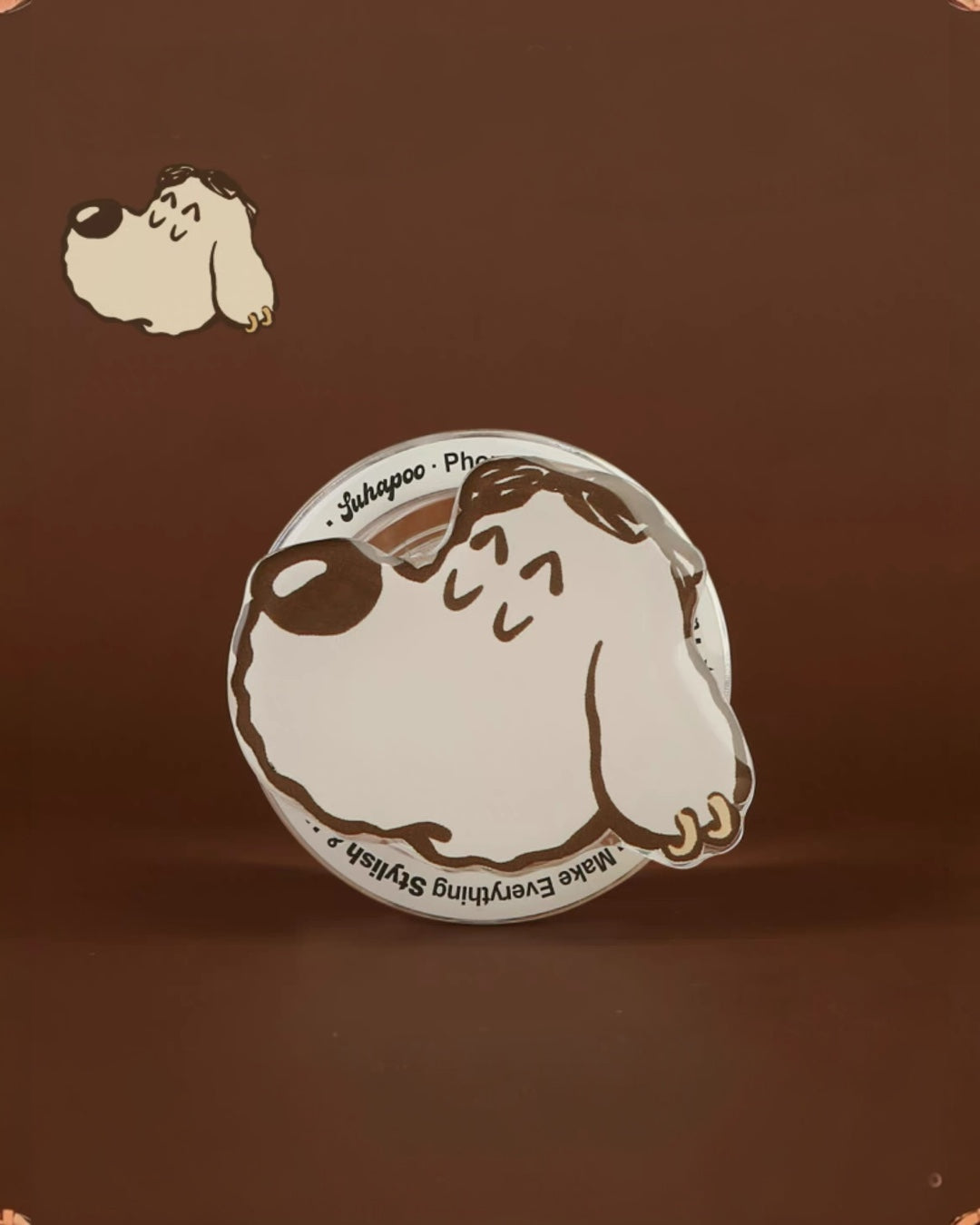 The creamy neutral background and proud cartoon pup give it retro flair, while the detachable grip adds extra function for stand mode or selfies. Whether you’re sipping coffee or scrolling through memes, this case makes your phone feel like the main character.