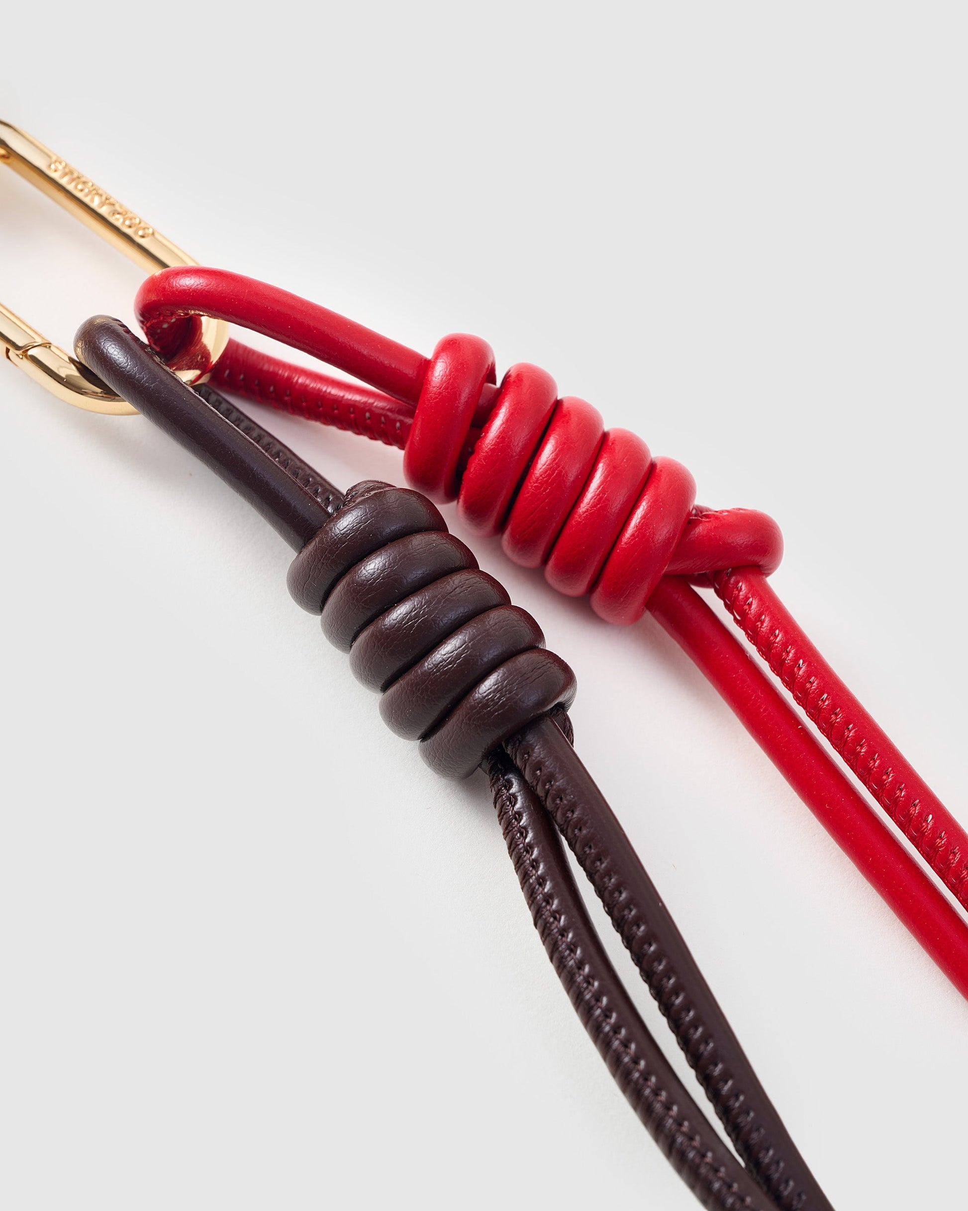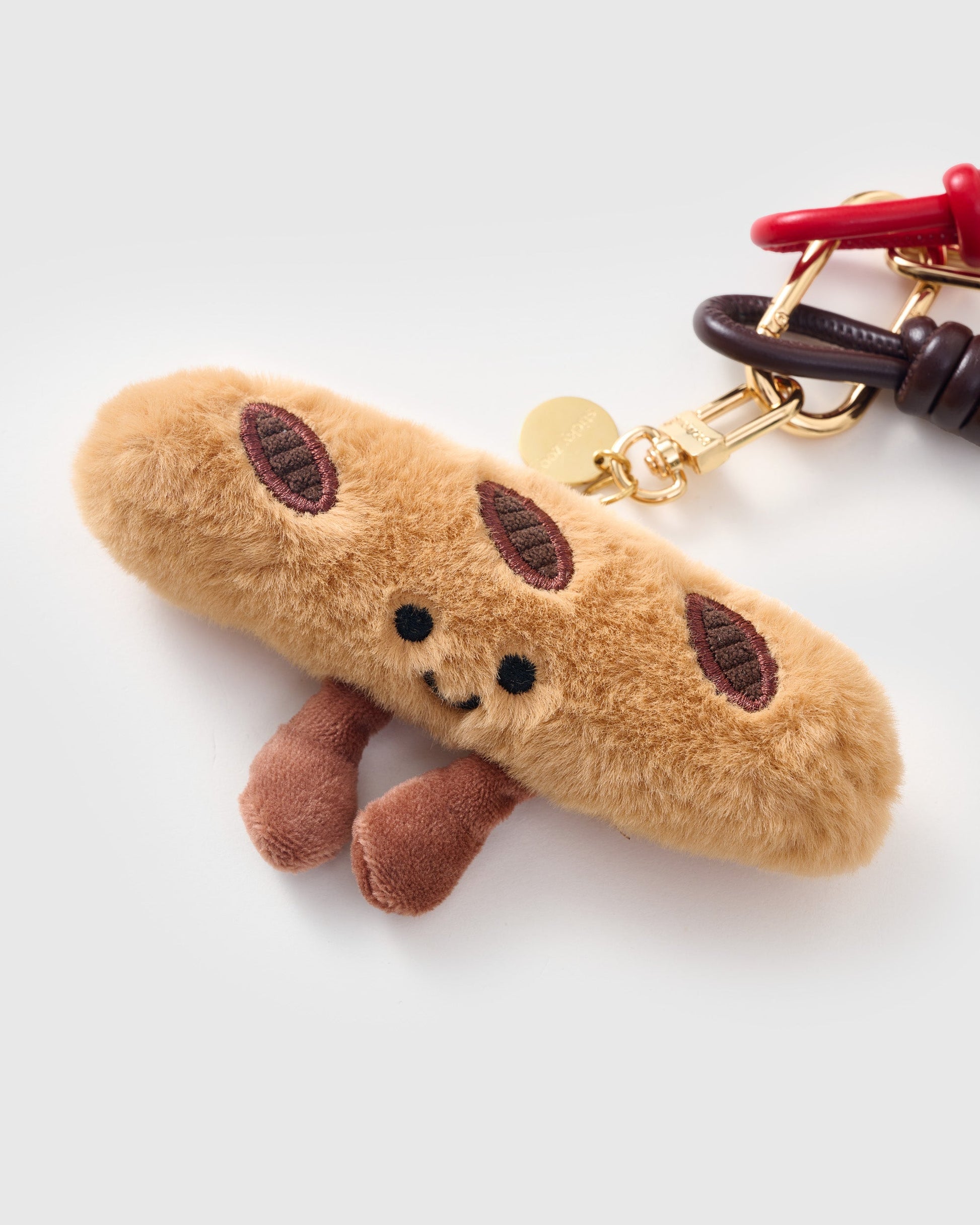 | Materials | Plush baguette mascot; red acrylic heart mirror; French Alran leather rope cords (cherry red & dark cacao); gold-tone components |