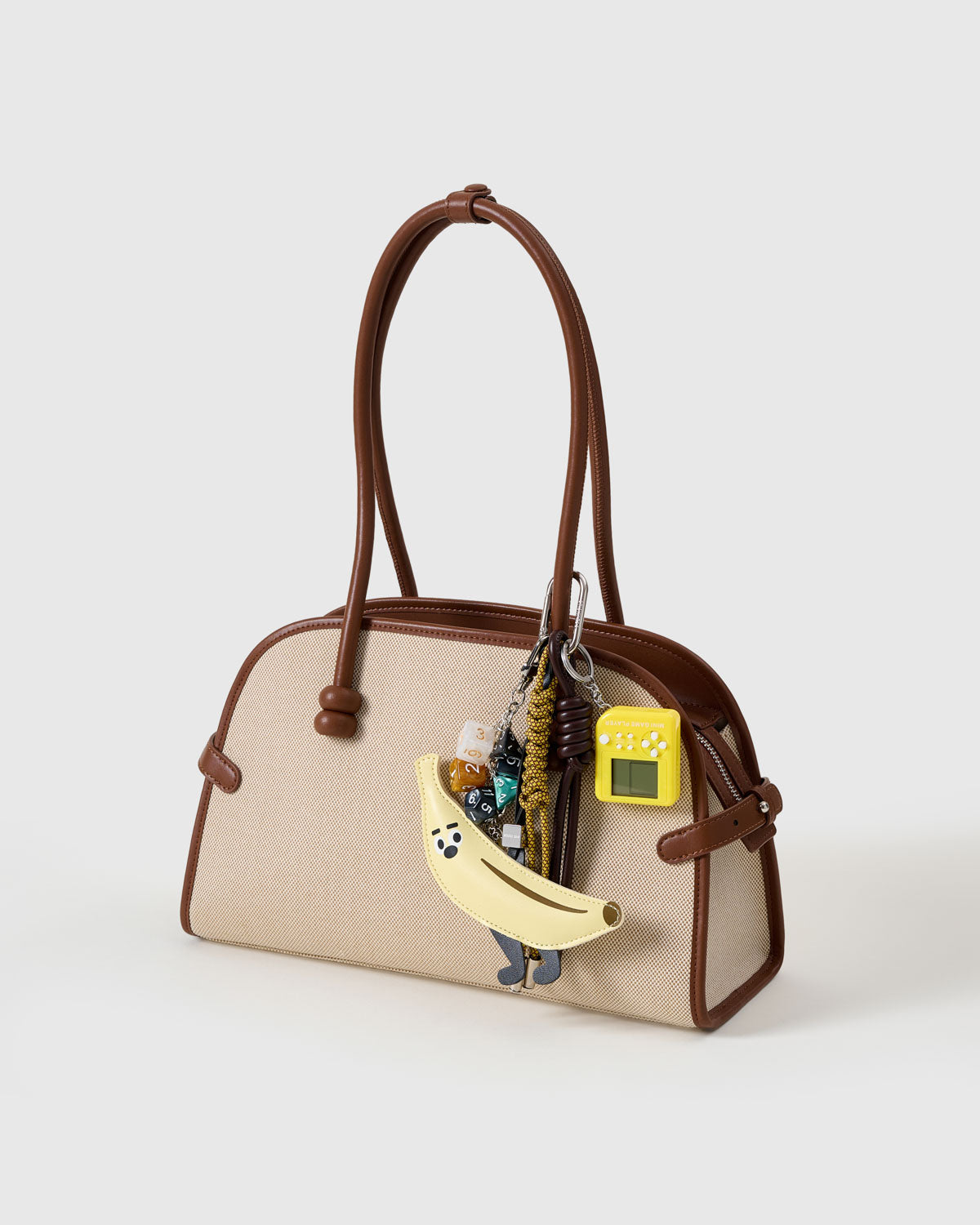 | Materials | Vegan-leather banana mascot; acrylic polyhedral dice; zinc-alloy key charms; ABS mini game device; vegan-leather cords (mustard & chocolate); stainless-steel hardware |