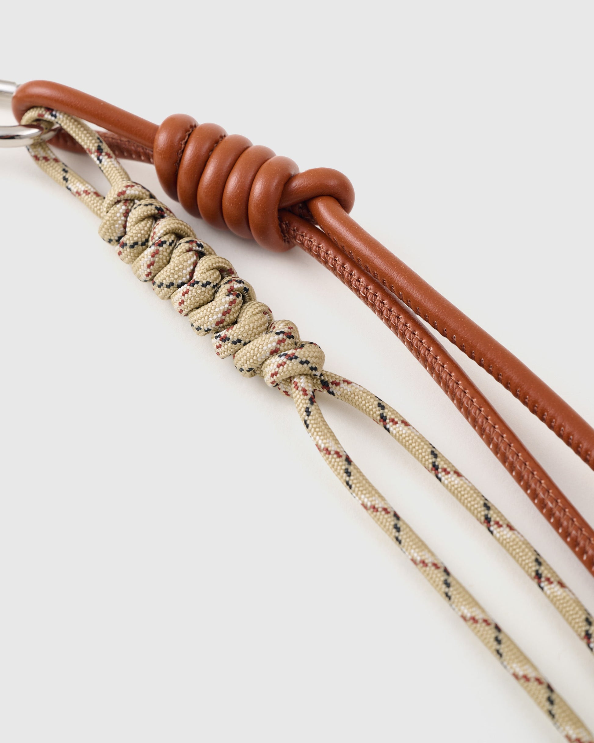 The cords are wrapped in barista tones—creamy nylon and warm leather, knotted by hand. Stainless steel Sticky Zoo® hardware finishes the piece with polish and weight.