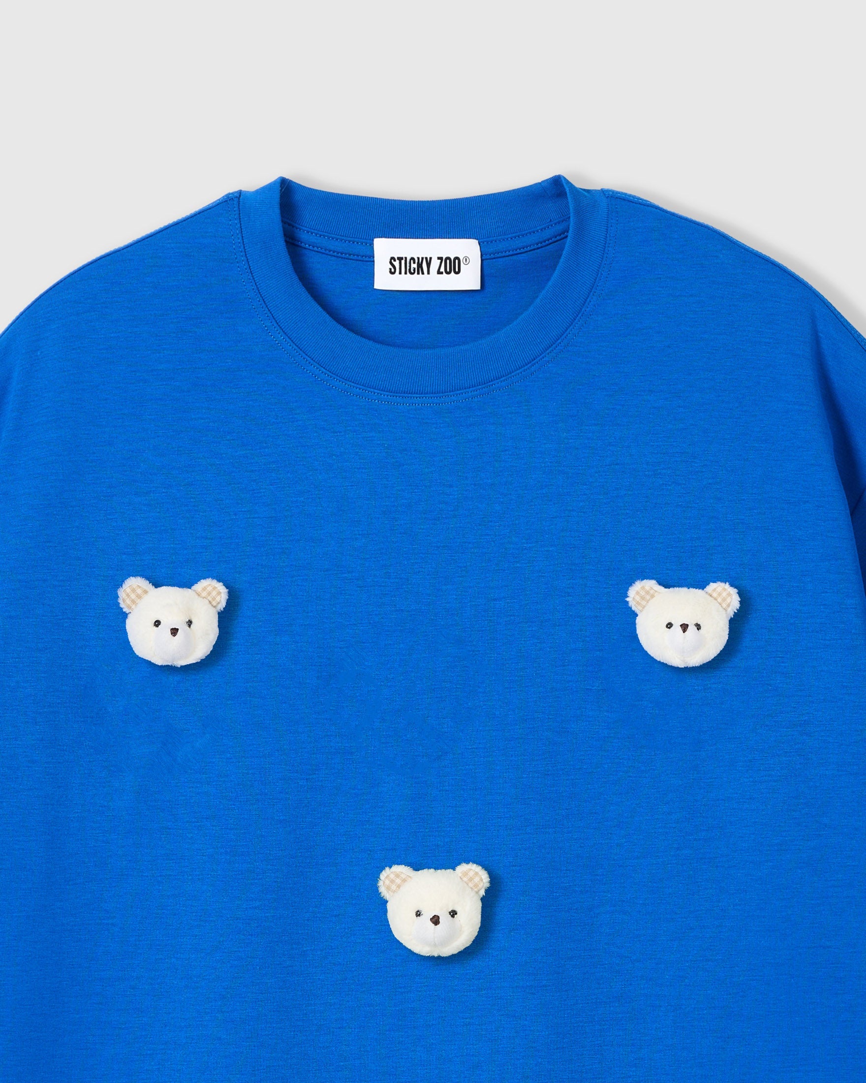 The Teddy Check-Ear Charm T-Shirt by Sticky-Zoo is crafted from premium 230gsm cool-touch cotton for breathable comfort and an elevated drape. Each plush bear head is stitched on by hand, so no two are exactly the same—tiny characters, quietly full of joy.