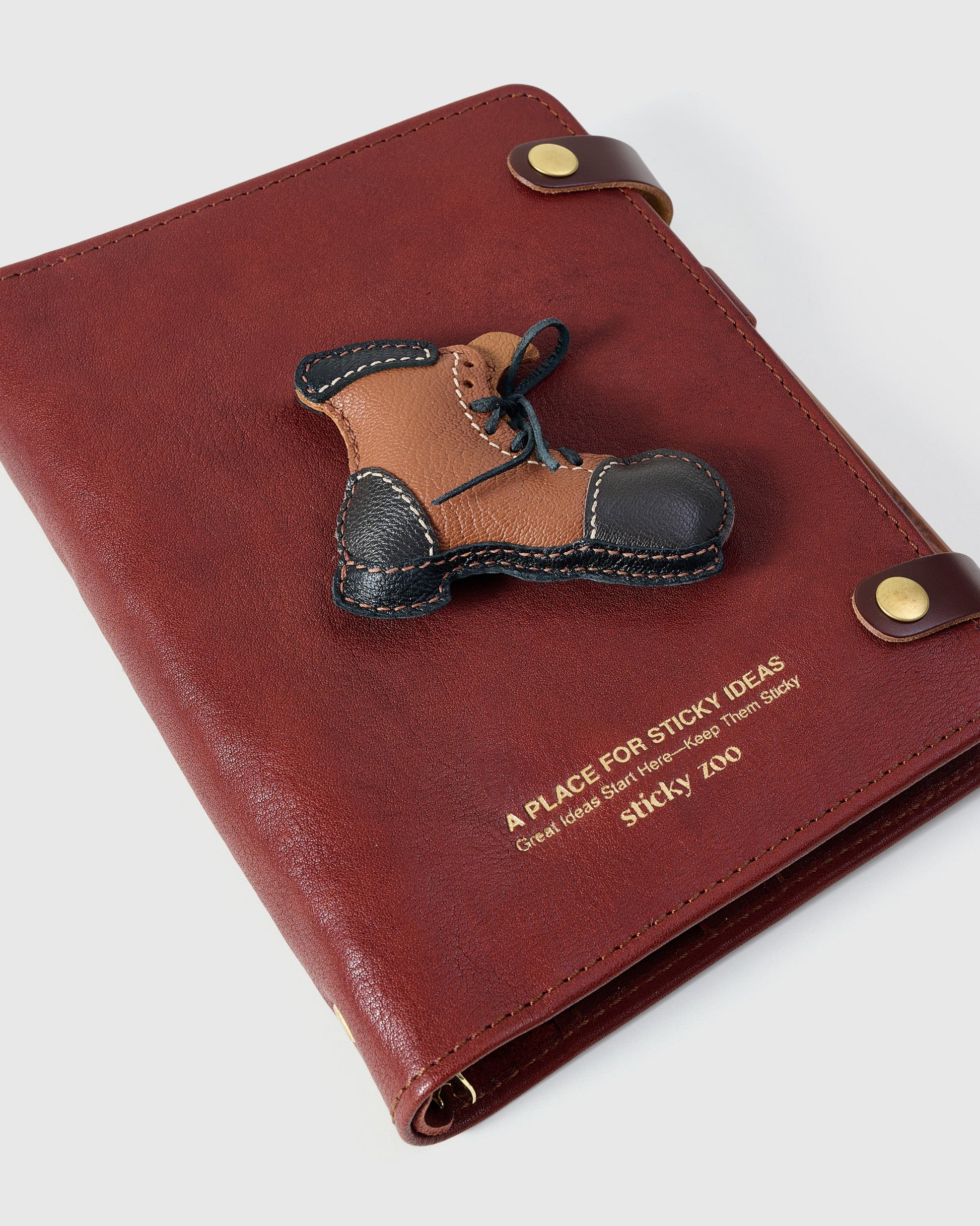 The Boots Notebook stands out with its meticulously handcrafted boot charm, adding a touch of adventure and unique personality to your notes. Crafted from luxurious sheepskin and goatskin leather, this notebook features refillable pages held securely by an elegant and durable 18K gold-plated internal ring mechanism. A matching premium pen is included, ensuring your ideas can flow freely at any moment. Keep your thoughts organized effortlessly with the exclusive themed page separator.