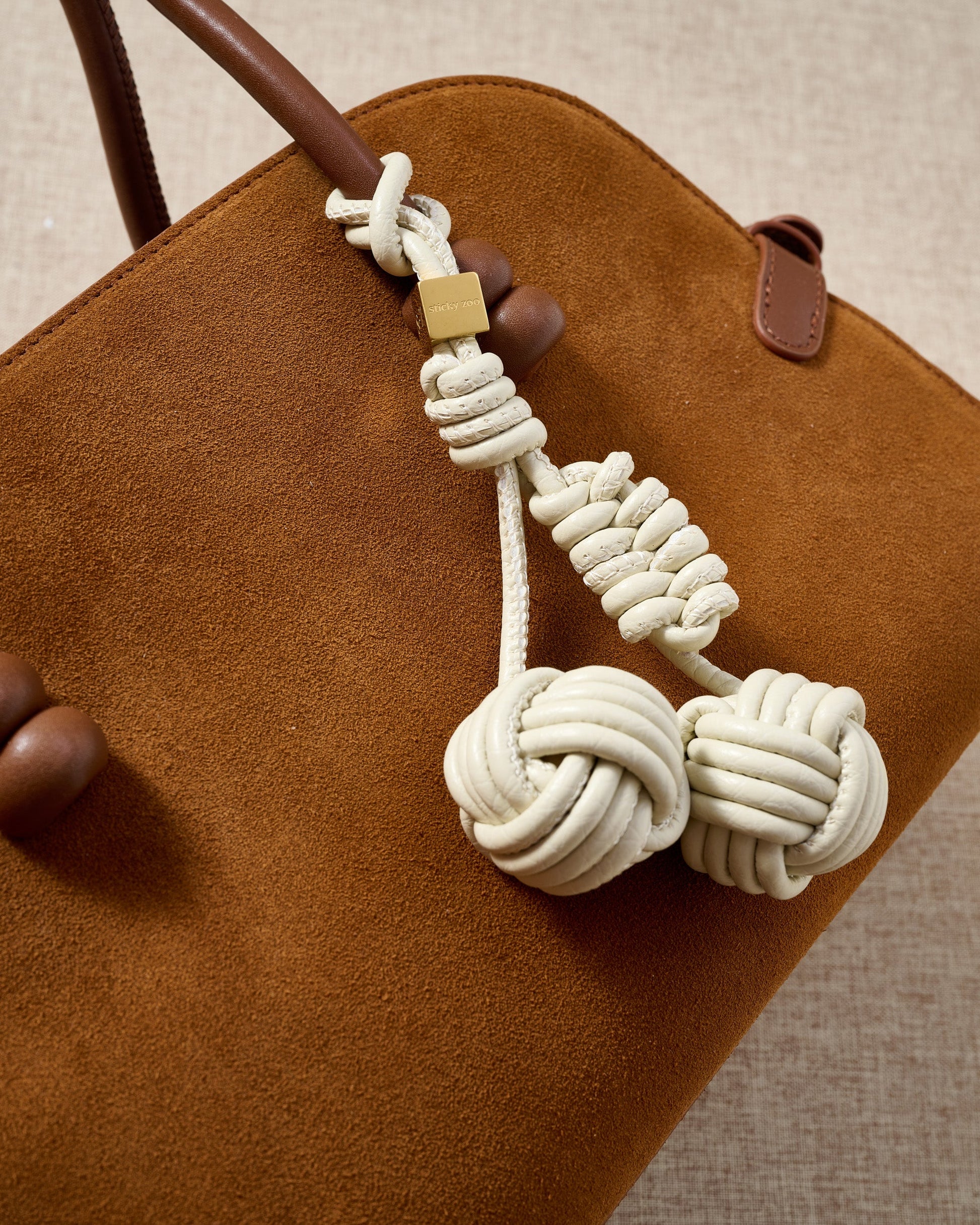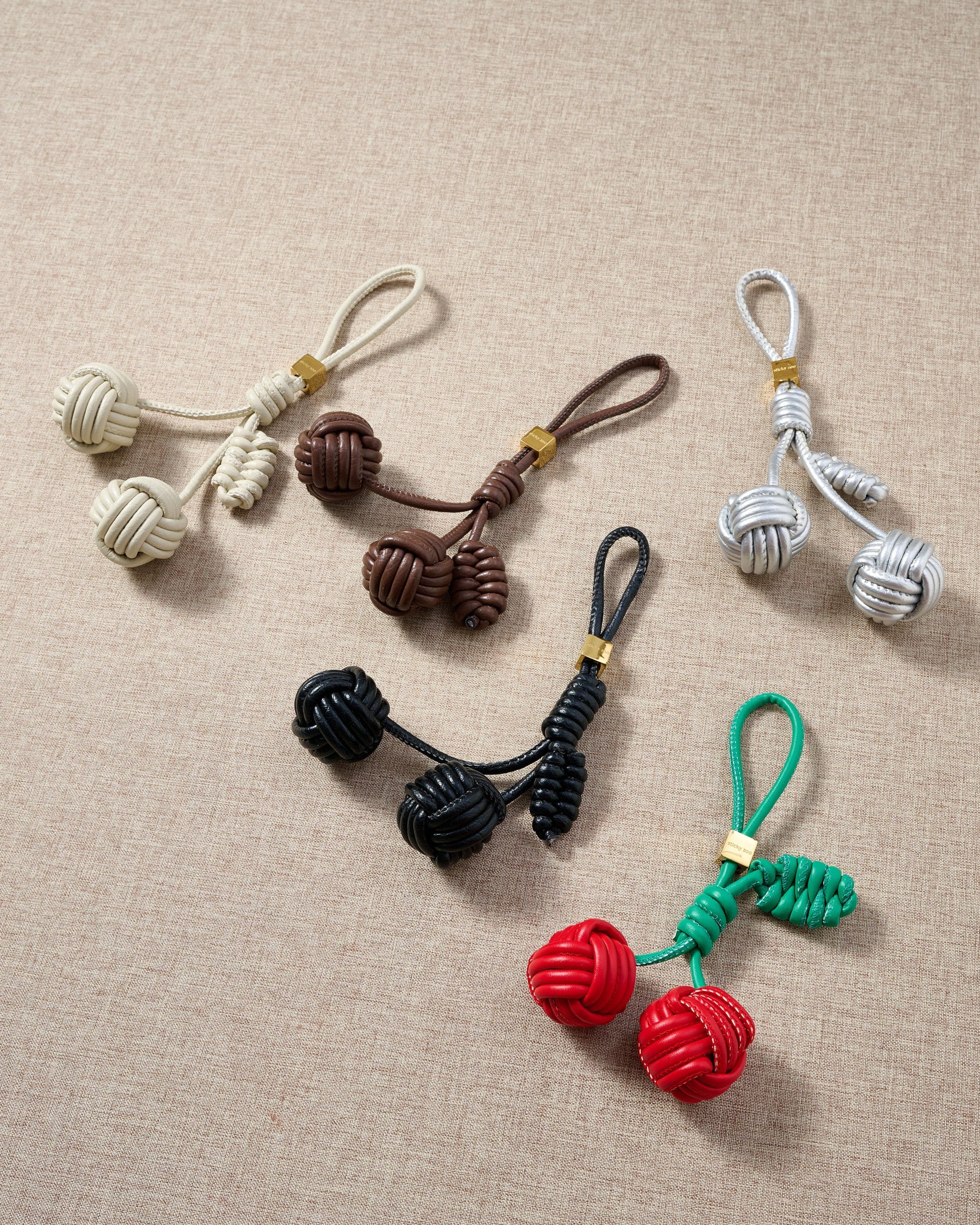The CHERRY BLOOM CHARM from STICKY ZOO® pairs French Alran leather with intricate knotted craftsmanship for a striking silhouette. Available in Red, Black, Silver, Dark Brown, and White, this charm shifts seamlessly from bag charm to keychain, adding a fresh accent to totes, handbags, or keys.