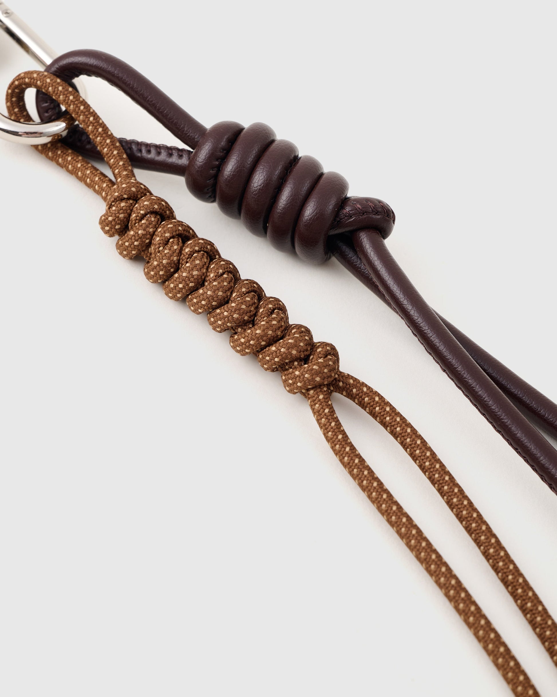- Bag Strap Loop – Brown looped leather strap with knot detail
