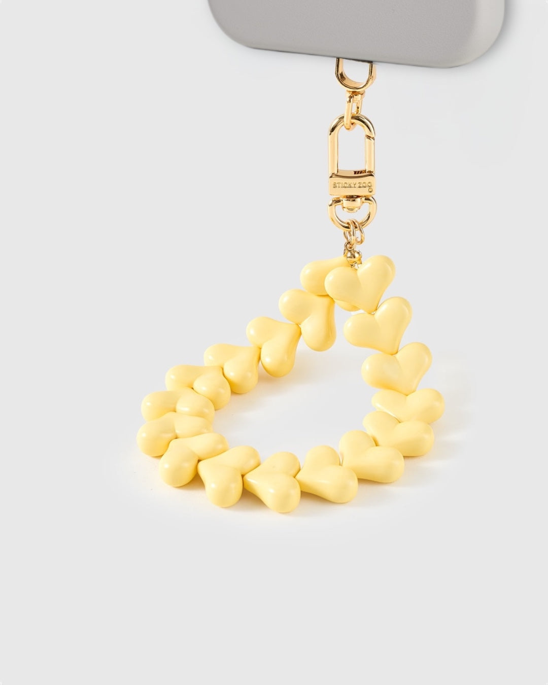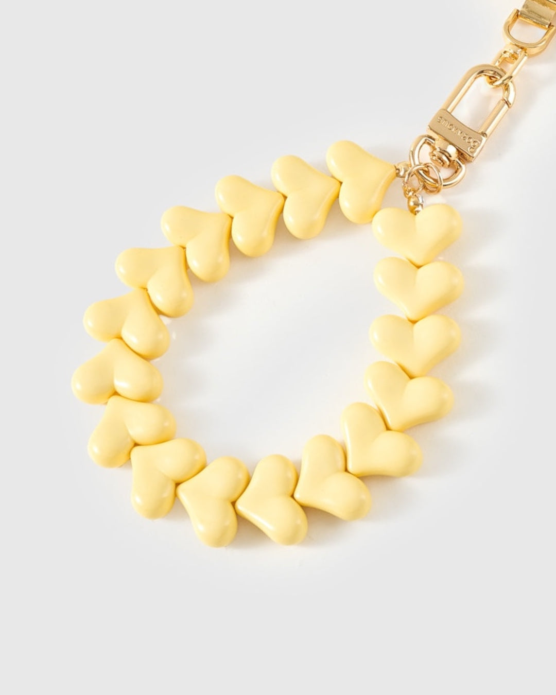 • Materials: Leather case body; polycarbonate back; TPU bumper; French Alran genuine leather charm, handmade; 100% handmade heart-bead strap; polished 18K gold clip
