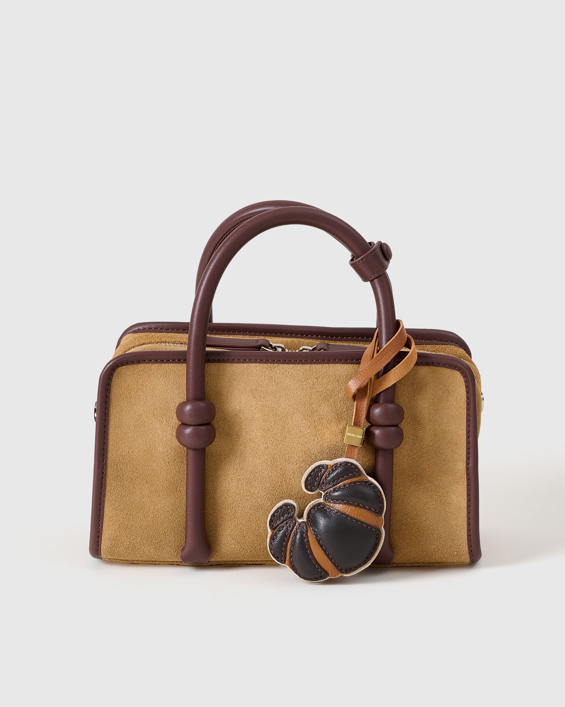 The BLACK CROISSANT CHARM from STICKY ZOO® captures the quiet luxury of a Parisian café night. Handcrafted from French Alran leather with warm caramel stitching, this charm moves seamlessly from bag charm to keychain—a timeless accent for lovers of French design.