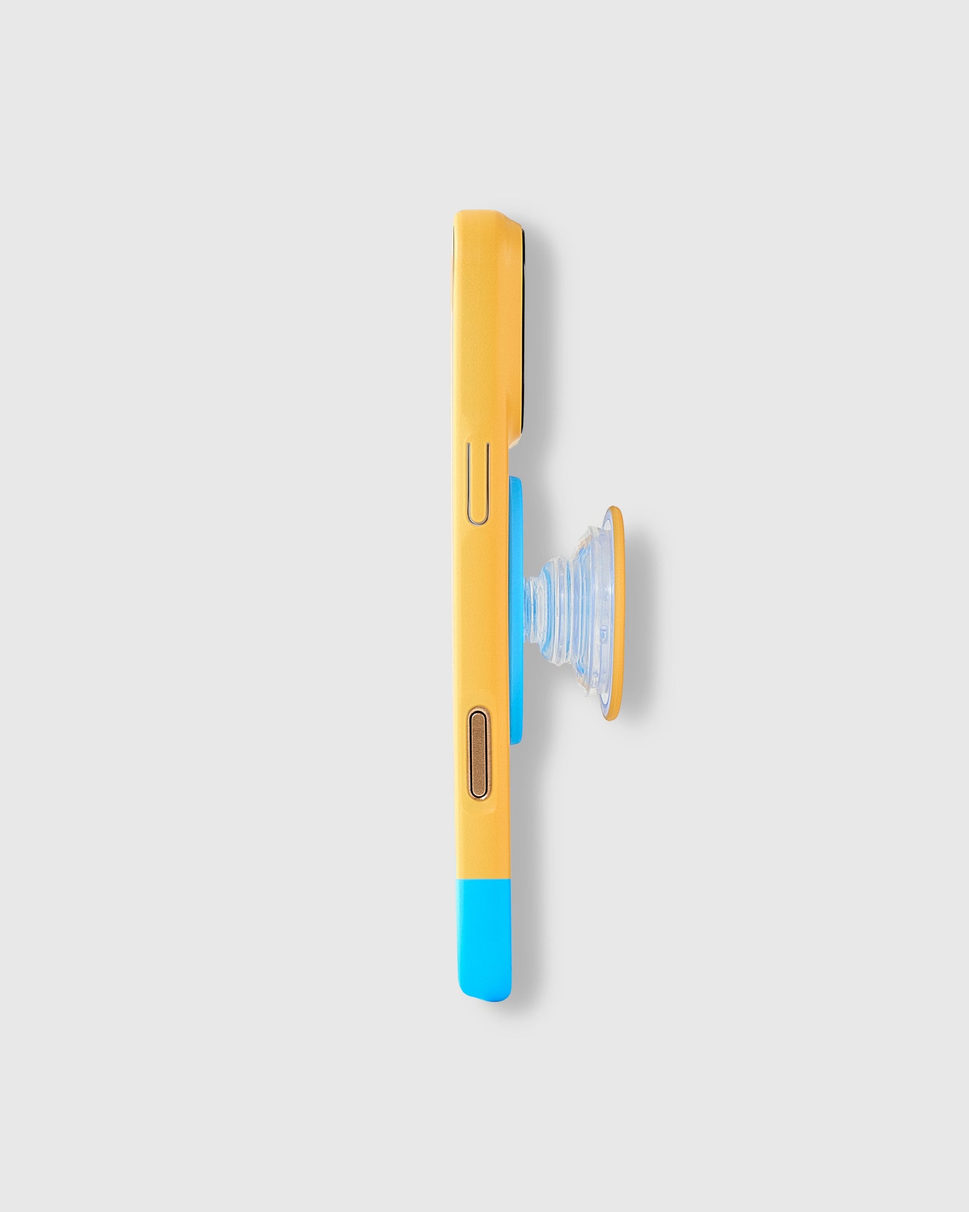 The CUTE BEAR CASE from Sticky Zoo® brings cheerful design and everyday function together. Bright yellow with a sky-blue accent, it features a bold bear graphic at the center and a matching 3D grip/stand for comfort and convenience. Built with a rigid polycarbonate back, TPU bumper, microfiber lining, and a Polished stainless-steel camera ring engraved with Sticky Zoo® logo, this case is protective, stylish, and MagSafe compatible.