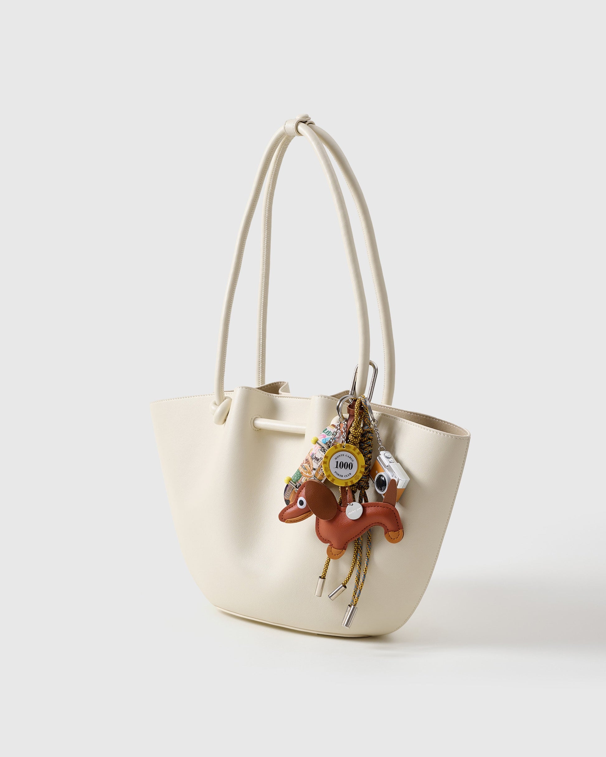 Meet the Dachshund City Roll Stack: your stylish little explorer on four paws. With a caramel leather dachshund leading the charm parade, this Stack is built for daydreamers and on-the-go snapshots. It includes a printed mini skateboard (yep, with grip tape), a retro camera charm ready for make-believe moments, and two color-wrapped climbing ropes that say you’re the type to get moving. Whether it’s your daily bag or your travel tote, this one turns sidewalks into catwalks.