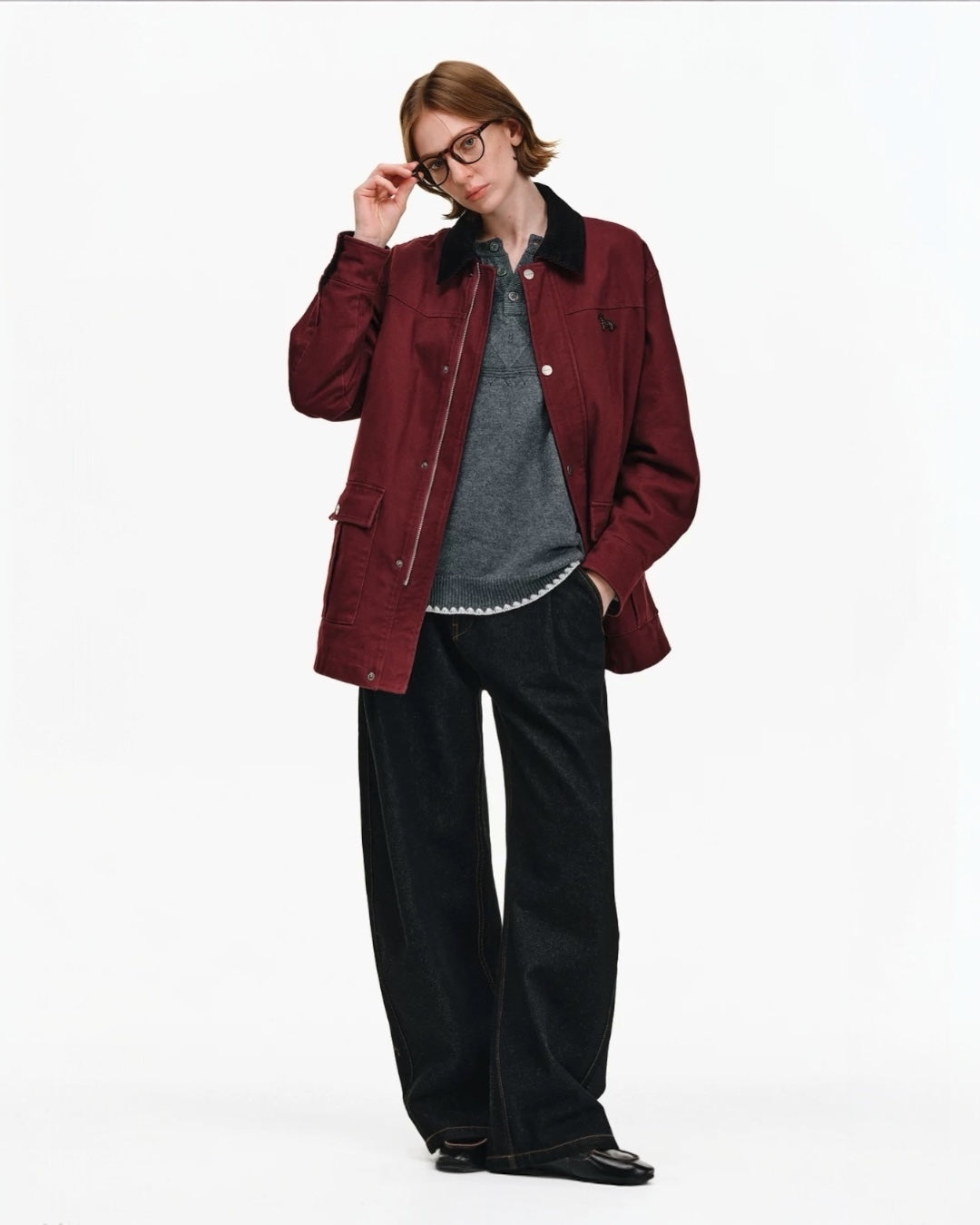 - Relaxed workwear cut → easy layering and timeless styling