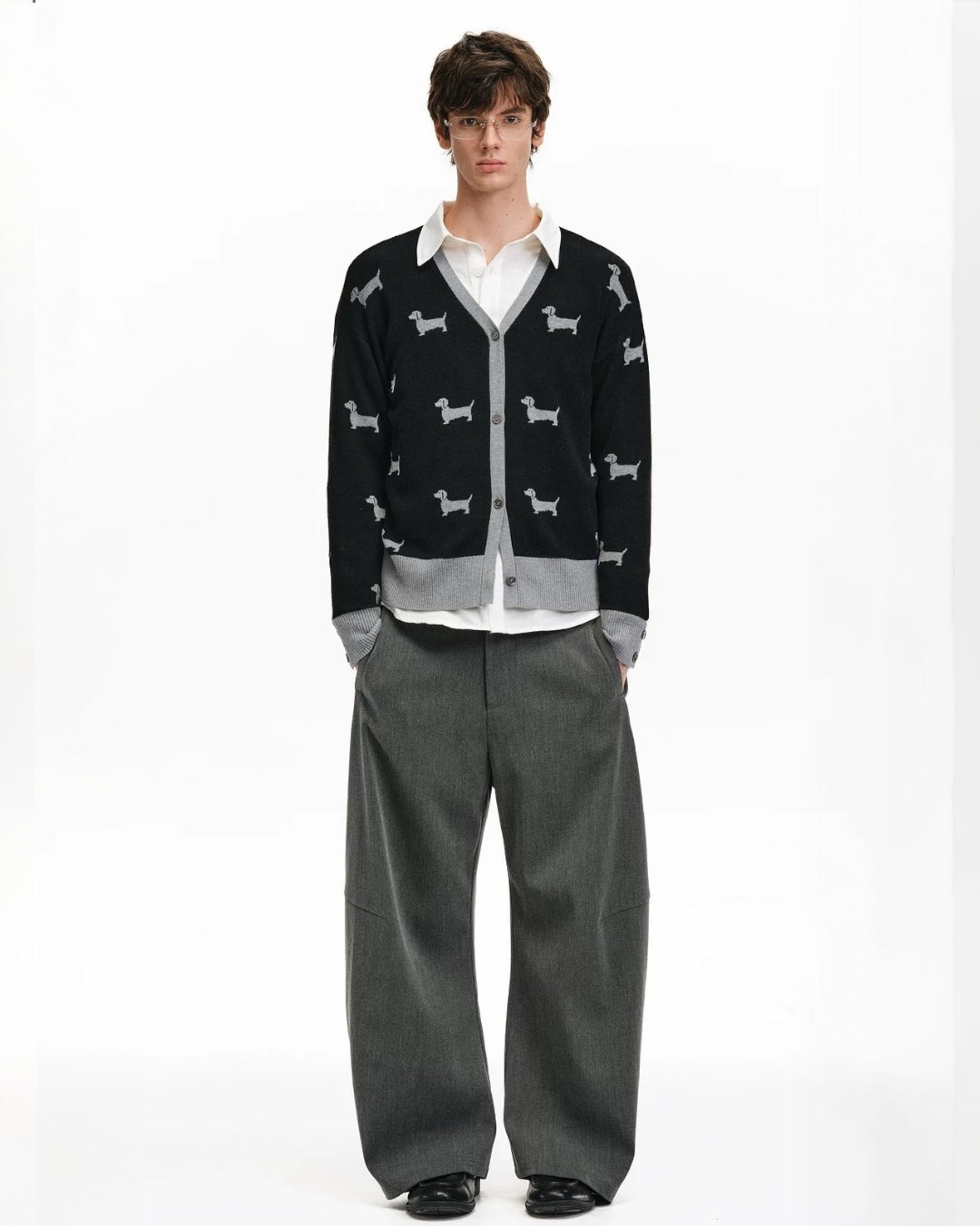 The DACHSHUND CARDIGAN from STICKY ZOO is crafted from premium Smith velvet yarn — smooth, warm, and breathable. Featuring an all-over dachshund jacquard pattern, it’s a playful yet elevated take on a classic silhouette. The relaxed fit and ribbed trims keep it refined while feeling effortless.