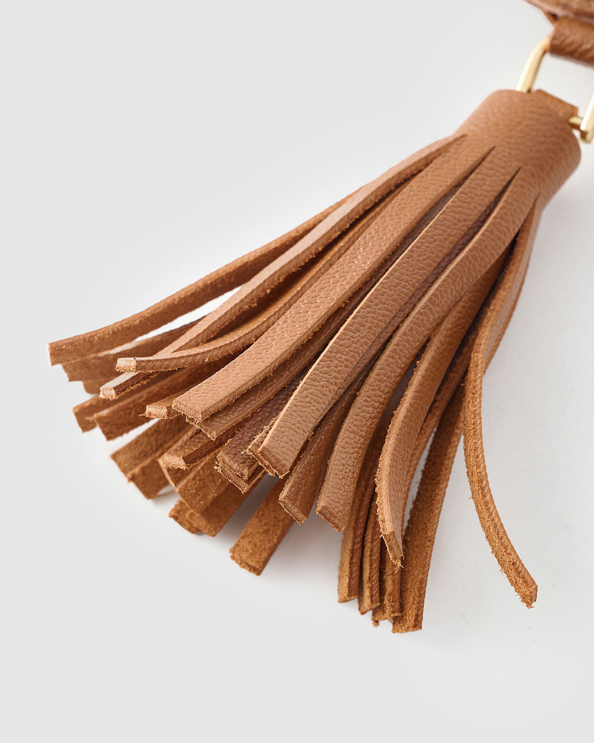 | Craftsmanship | Hand-layered leather with stitched detailing and tassel finish |