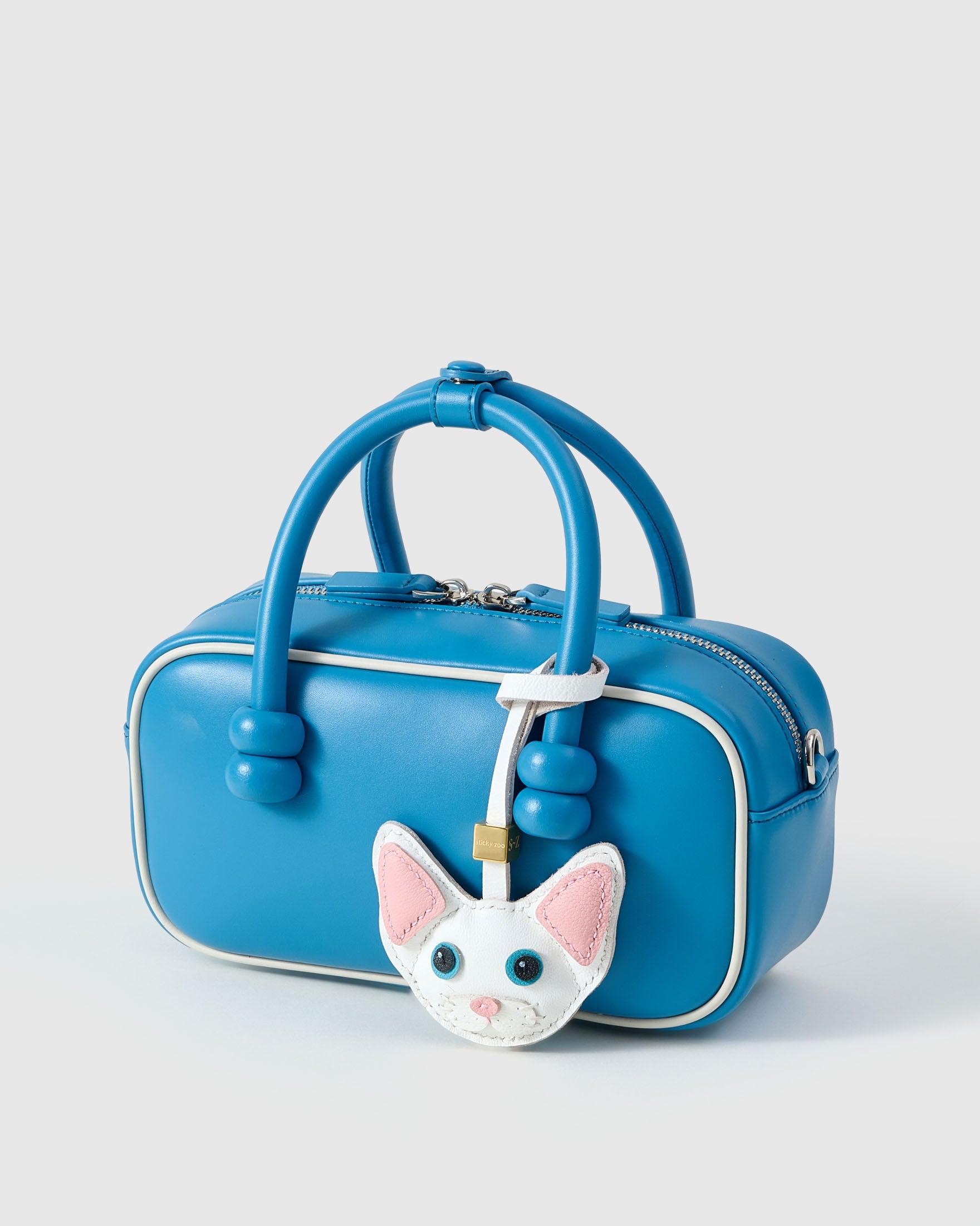 “Curious. Chic. Collectable.” A tiny Devon Rex with outsized personality, crafted to sit purrfectly on your bag.