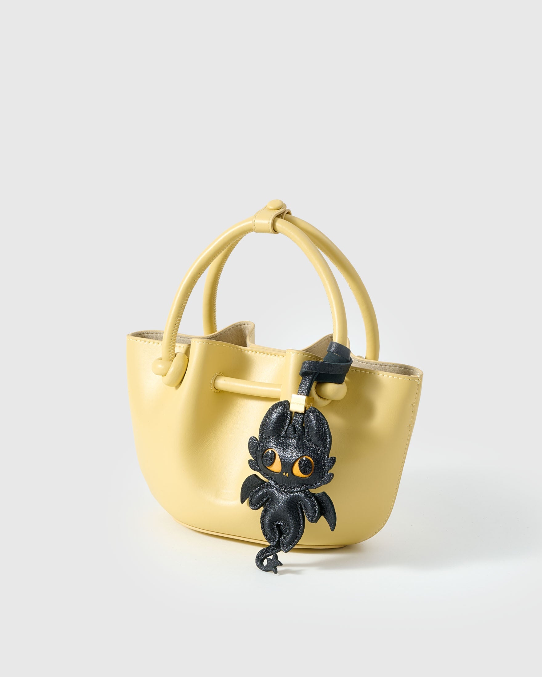 The Guardian of Charm – This little dragon might not breathe fire, but it will light up your look. With folded wings, a curled tail, and oversized golden eyes, it’s designed to carry mystery and warmth. Entirely handmade with soft black leather, this charm is ideal for dreamers, adventurers, and believers in a little magic.