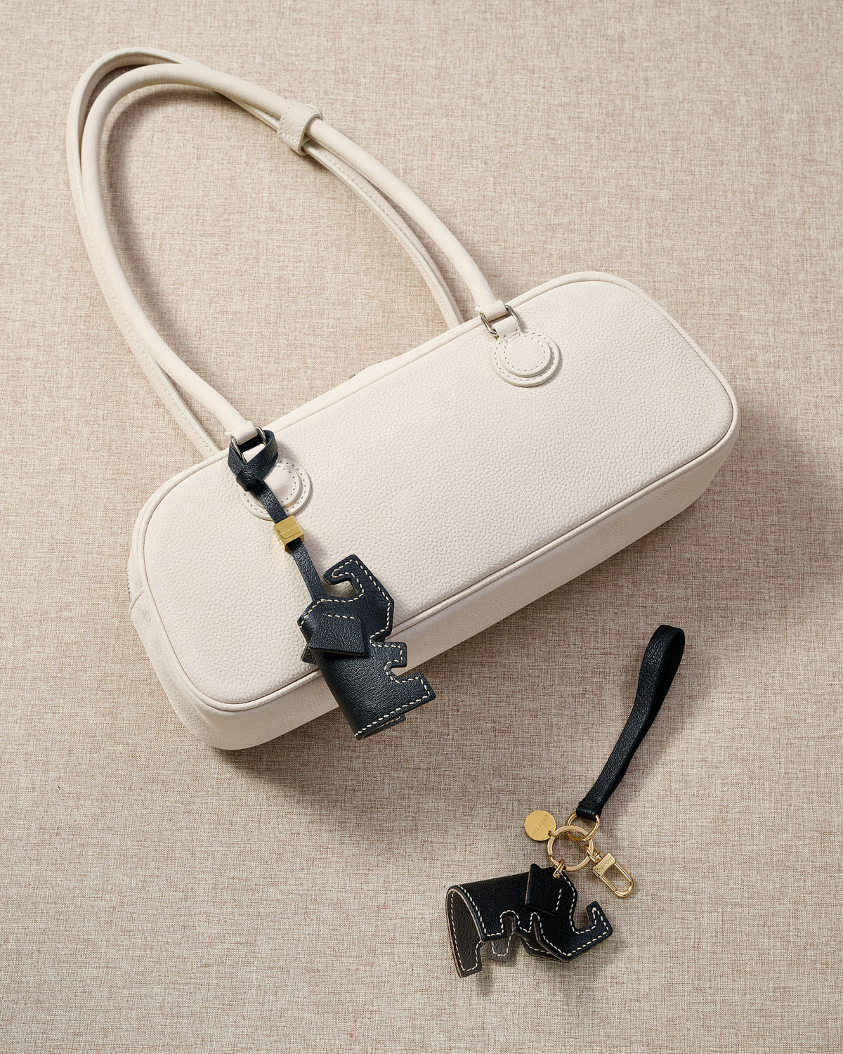 Each charm is carefully handmade, with precise stitching and a folded silhouette that forms the shape of an elephant. The clean, curved lines and subtle detailing reflect the charm’s sophisticated simplicity. A refined accent piece that adds both character and craftsmanship to your daily essentials.
