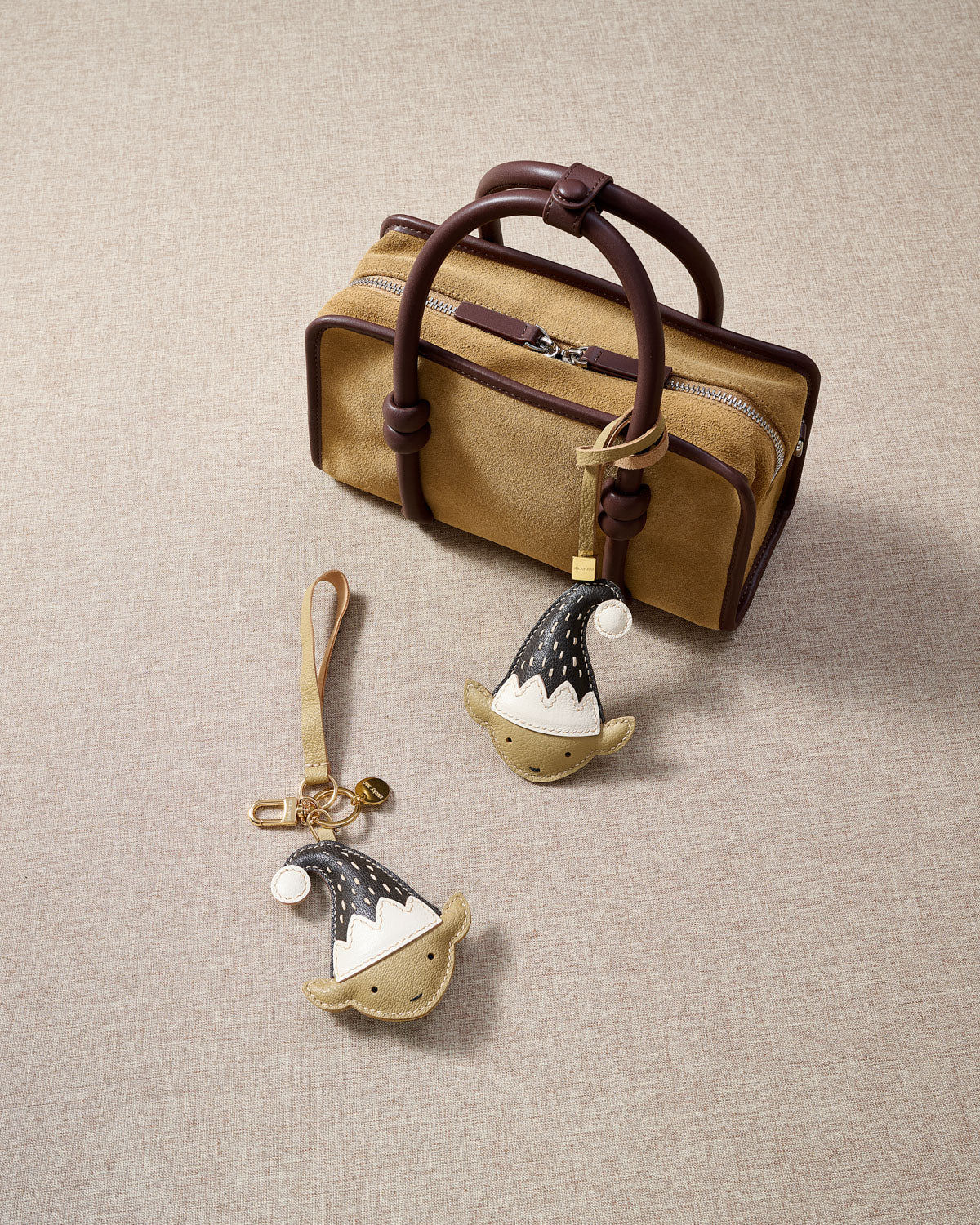 Playful. Magical. Effortlessly charming. The ELF CHARM by STICKY ZOO® captures the spirit of imagination with a modern twist. Crafted in khaki and black leather, it features a hand-stitched pointed hat and a sweet, curious face — a little companion that brings delight wherever it goes.