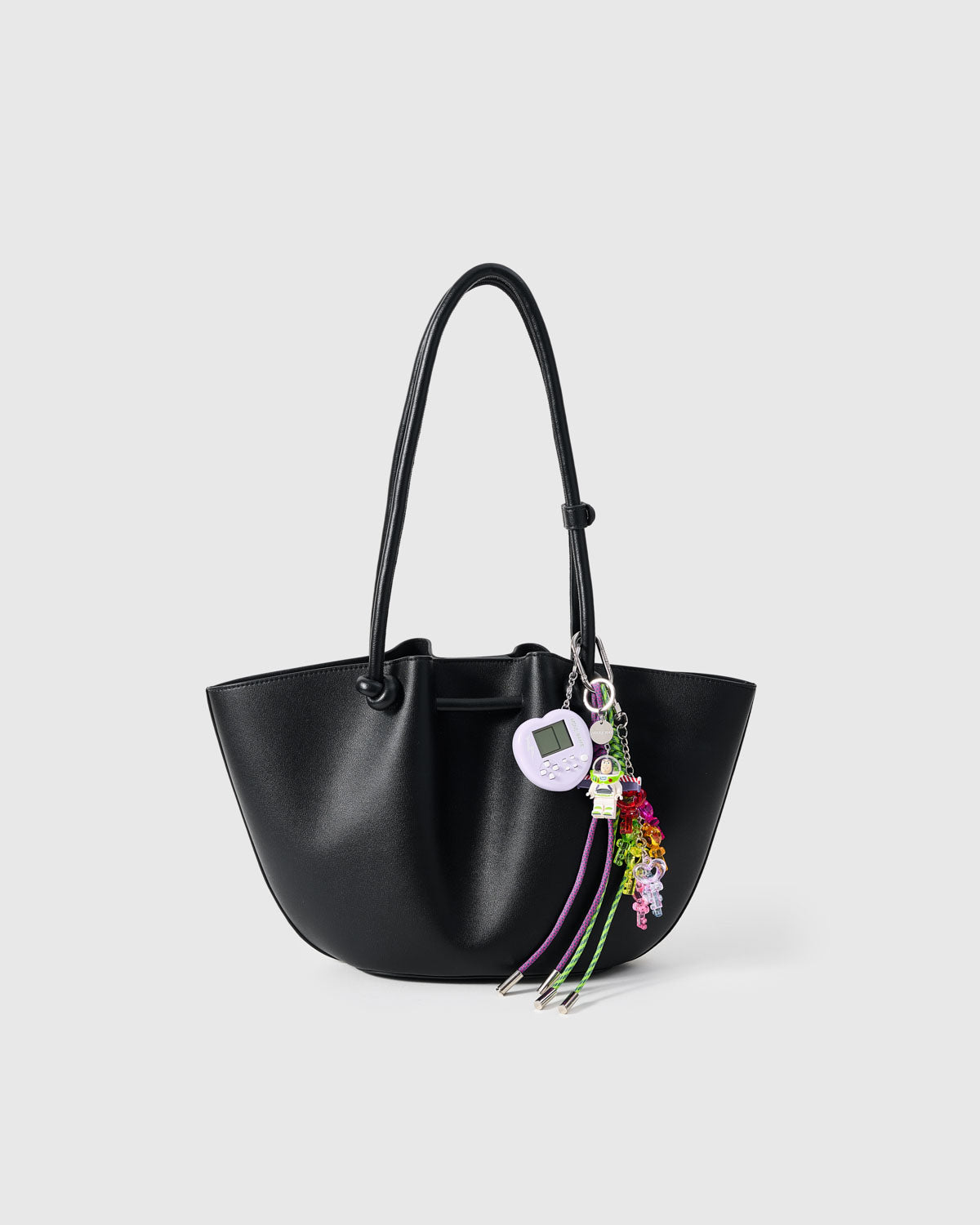 Playtime. Planet vibes. Pure color joy. A rainbow of heart keys, a lavender game console, and a tiny space hero turn your everyday bag into orbiting nostalgia.