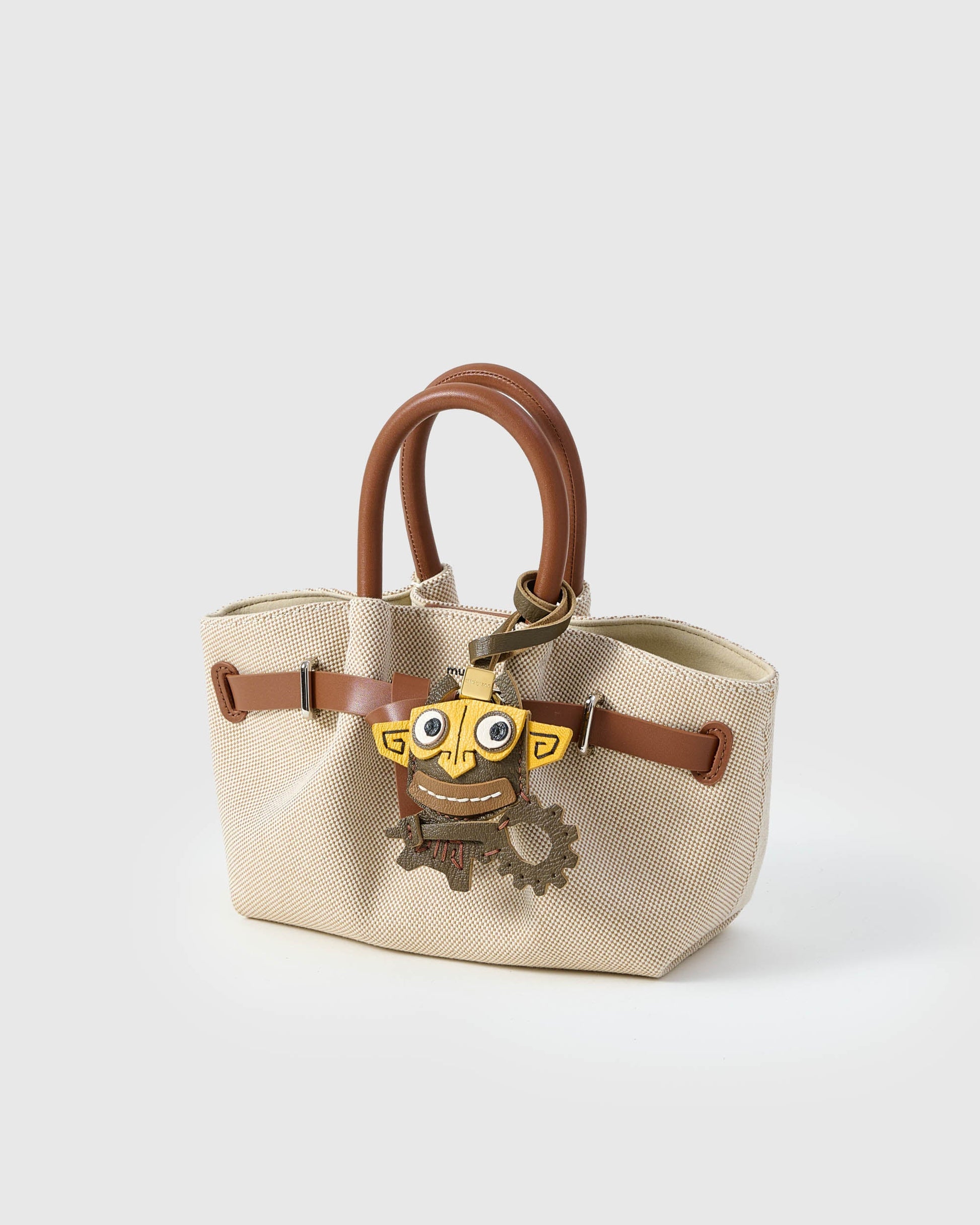 Handmade in small batches, the GEAR GOBLIN CHARM from STICKY ZOO® stacks French Alran leather into bold, graphic layers—sun-yellow mask, olive body, stitched smile, and a hilariously oversized gear. Clip it to totes, keys, camera straps, or backpacks and let the compliments assemble themselves.