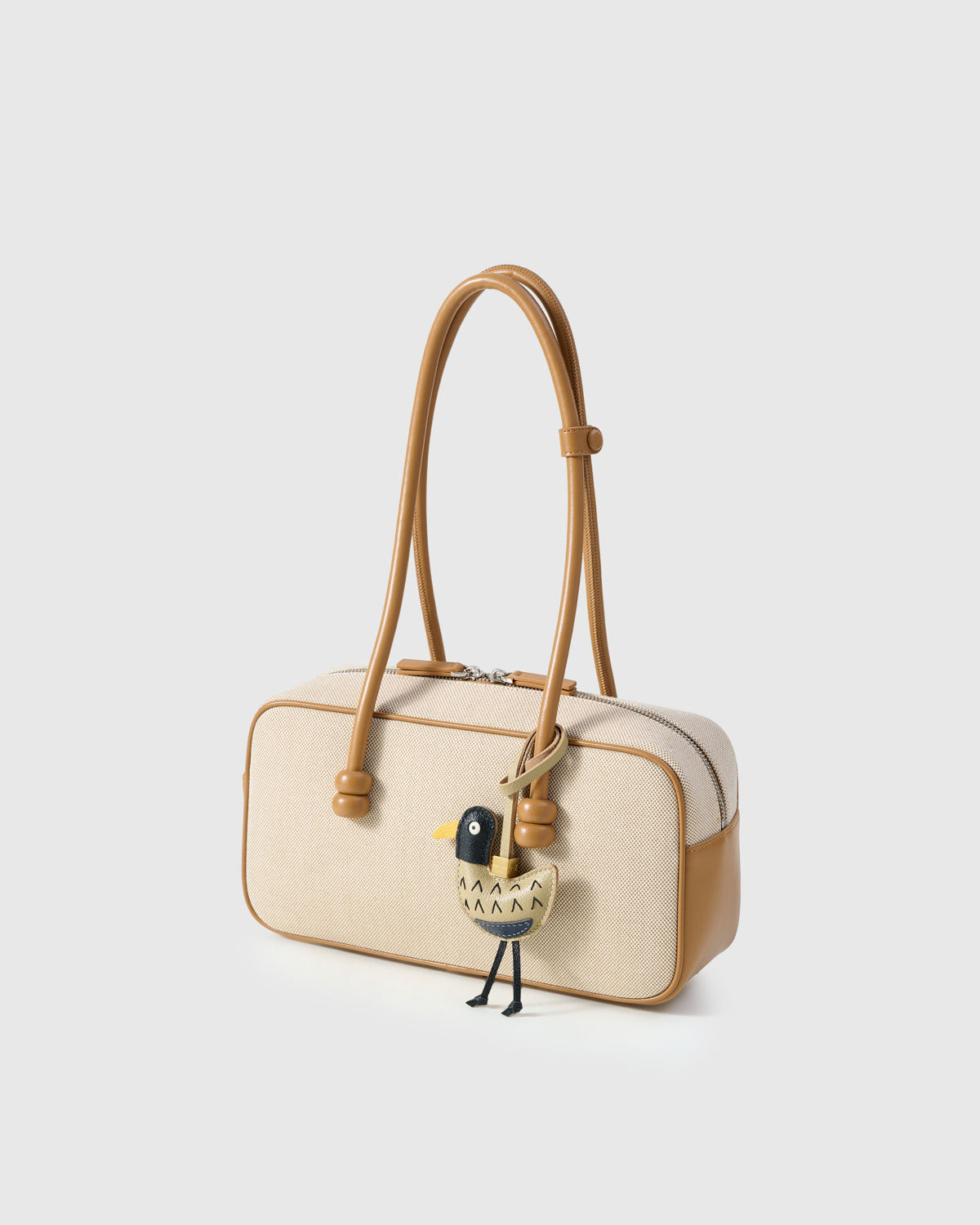 Each piece is meticulously stitched by hand with curved lines and clean contrast seams that mimic a gull’s graceful form. From its tiny stitched wings to its bright yellow beak and dangling leather legs, this charm feels both whimsical and elevated — a perfect reminder of sunny seaside days.