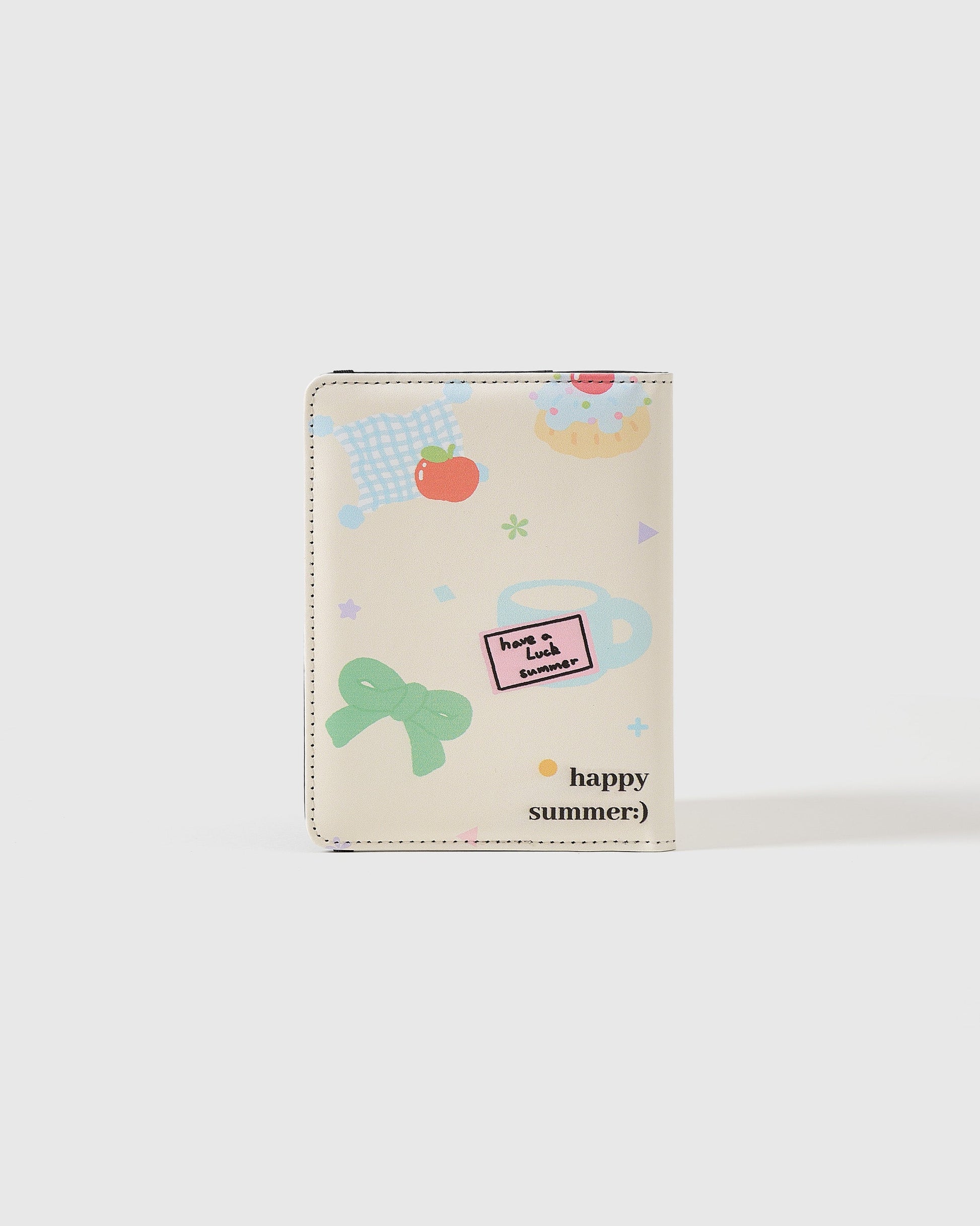 If you’ve ever felt like travel should taste sweeter—this one’s for you. The Happy Summer passport holder is your pocket-sized dessert cart. With pastel cakes, cherries, gingham napkins, and a green bow that ties it all together, this holder packs a picnic of joy for every check-in. Each time you flash it, it’s like offering customs a cupcake. Lightweight, cute, and built to brighten the journey.