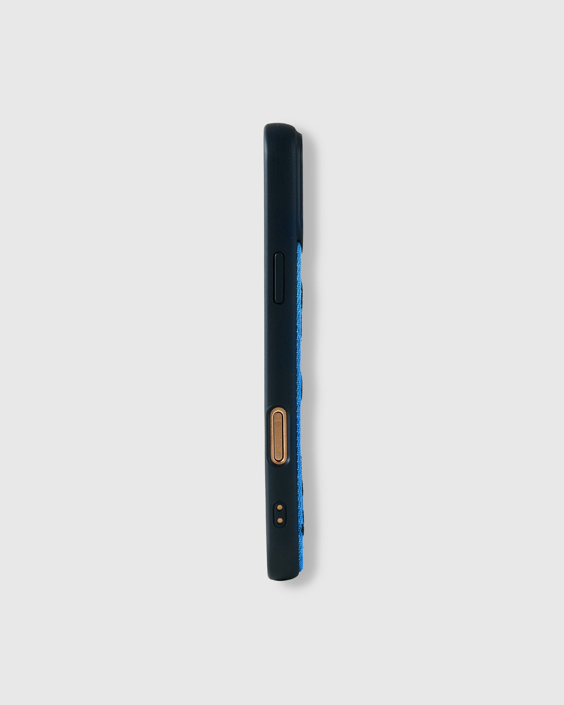 - Materials: Polycarbonate back, TPU bumper, denim fabric overlay, microfiber lining