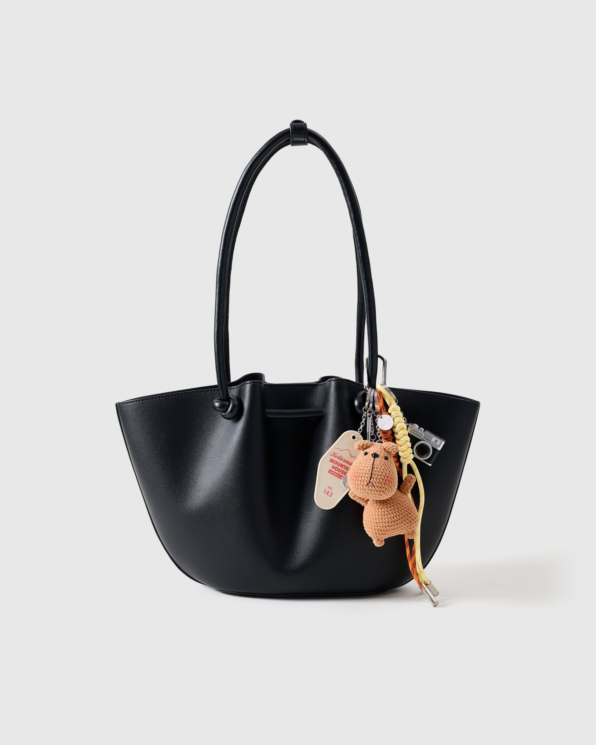 KIKI BEAR STACK CHARM has brunch energy and golf-course charm in one plush package. With her sporty style, tiny visor, plush paws, and delightfully deadpan stare, KIKI delivers instant conversation-starter vibes. Carry her to your favorite café or gallery, and get ready to answer the question everyone asks: “Wait—where did you get that?”