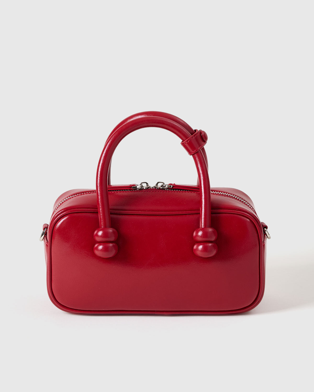 Meet the LATTE MINI BAG — a top-handle bag designed for sculptural charm and everyday ease with smooth vegan leather and crisp contrast piping.
