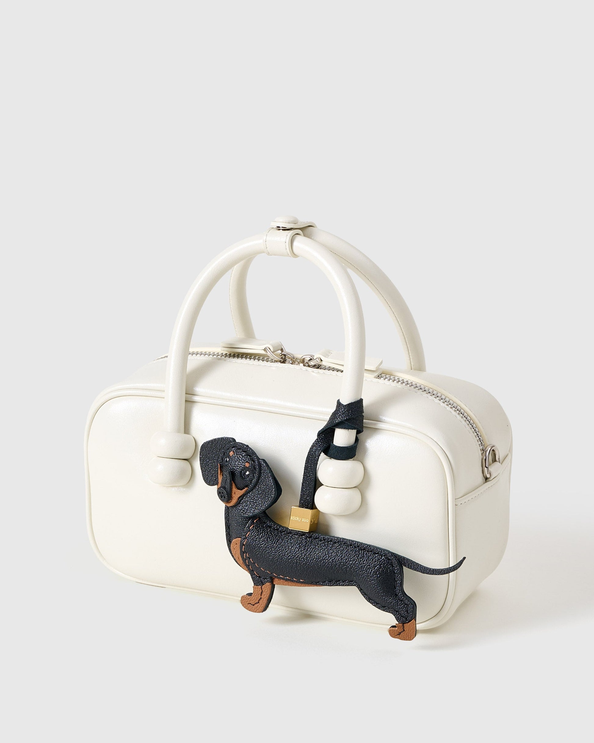 The LONG DASH DACHSHUND CHARM is available in two equally striking finishes: the smooth sophistication of ALRAN French sheepskin leather and the velvety depth of suede leather. With its elongated silhouette, stitched joints, and gentle curve of the tail, Dash is made to accompany you like a loyal shadow—only shinier.