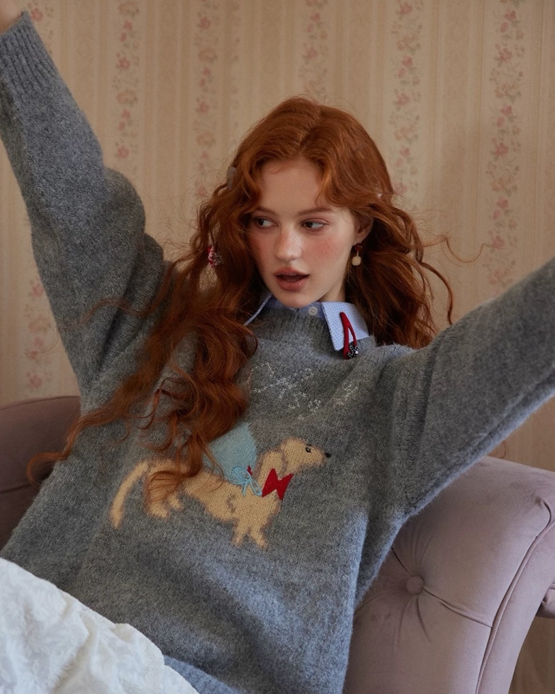 • Craftsmanship: Embroidered kitten motifs; ribbed cuffs and hem