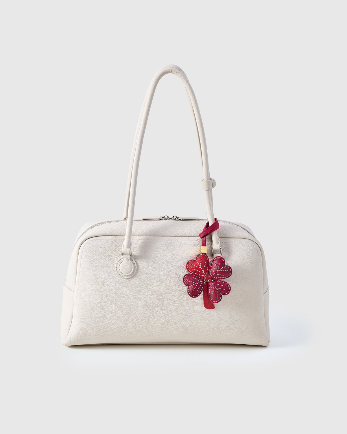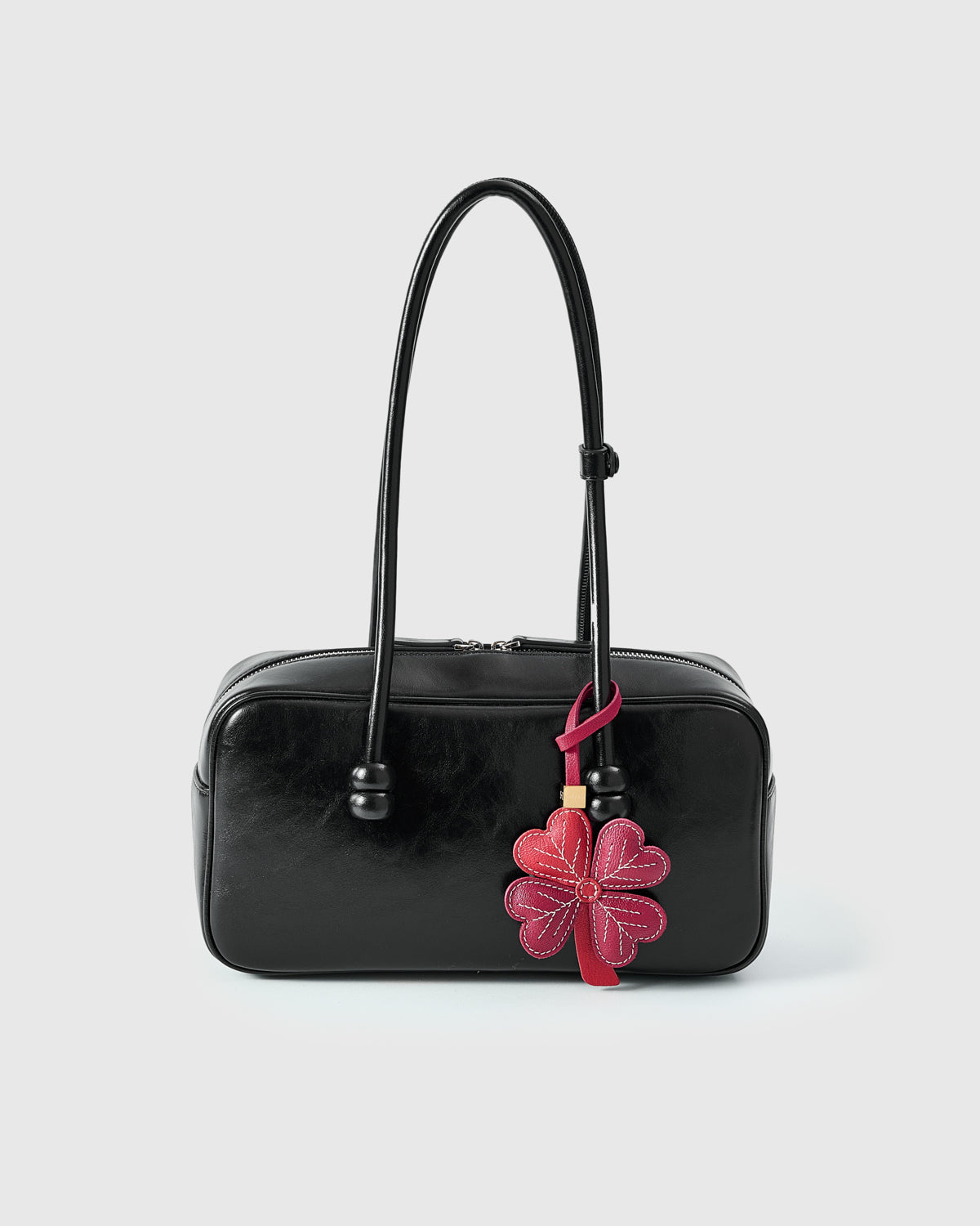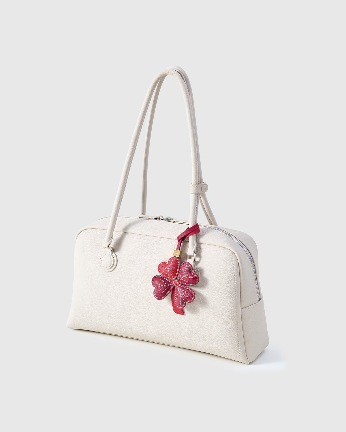 Four-leaf clover motif — a rare icon of good fortune reimagined in layered French leather with delicate stitching and sculpted heart-shaped leaves. Its vibrant green palette and gold hardware evoke renewal, prosperity, and modern elegance.