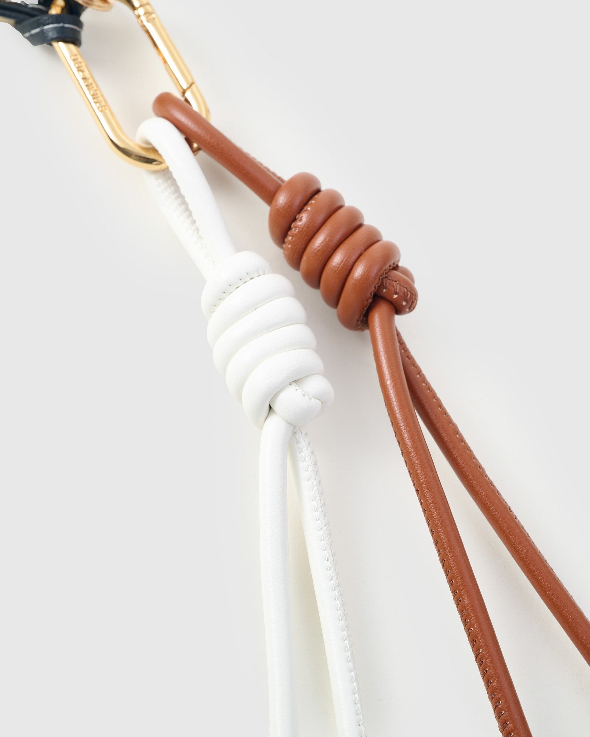 - Materials: Alran leather horseshoe, gold bow, heart & star charms, ivory & cognac cords