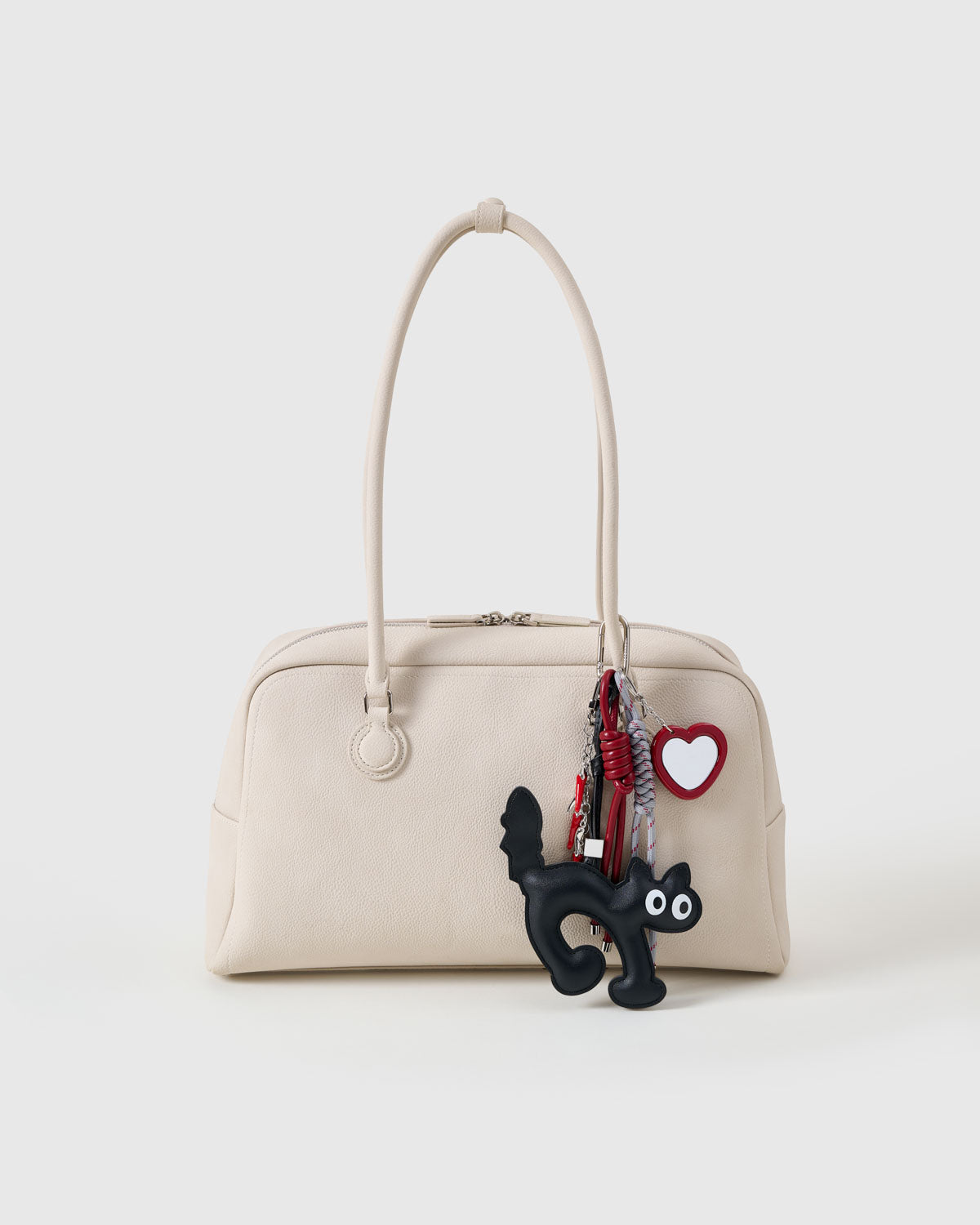 Good luck never looked this bold. A glossy black cat, red heart mirror, and chili trinkets bring playful superstition and instant compliments to any carry.