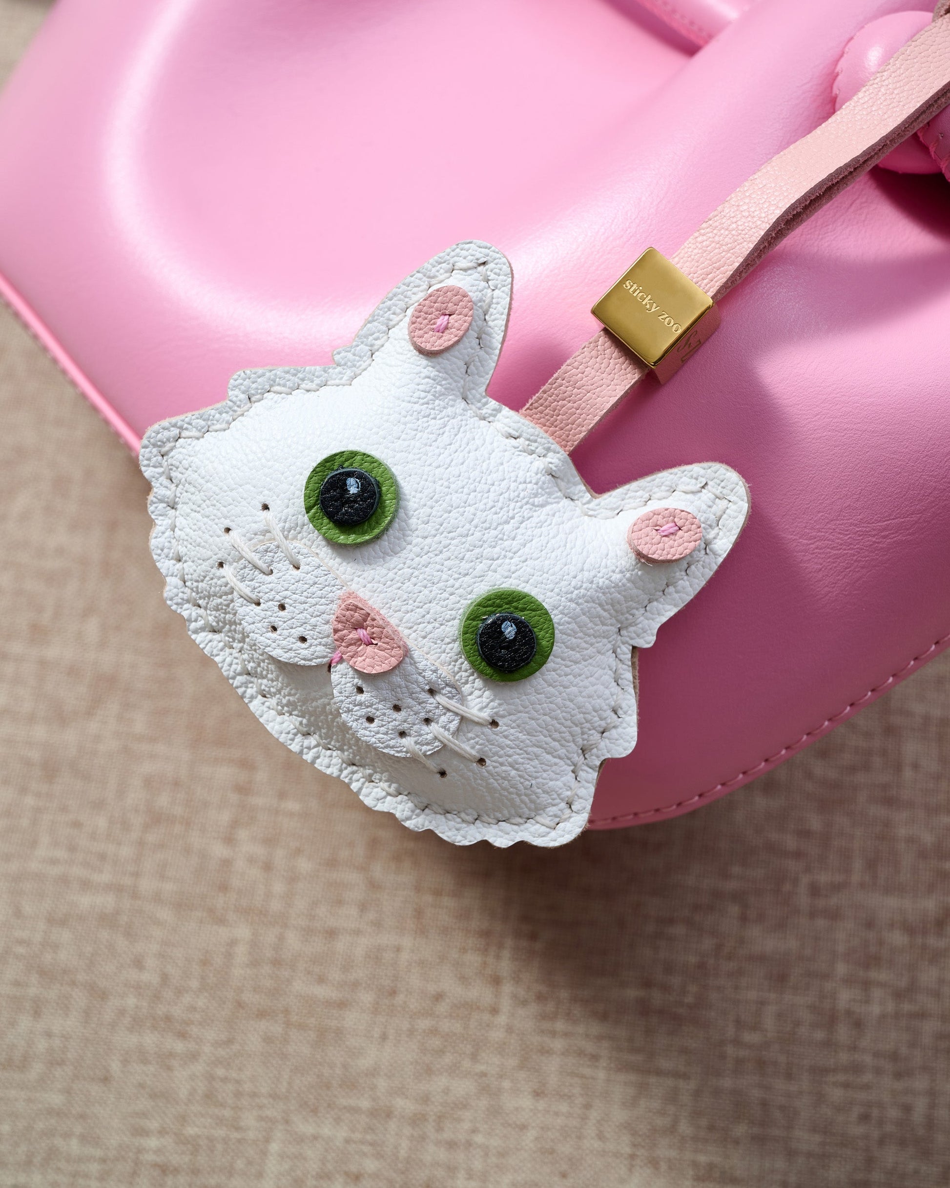 The MAINE COON CAT CHARM from STICKY ZOO® is meticulously handmade in French Alran sheepskin leather with hand-painted edges and soft pink detailing. Designed to transition from leather bag charm to keychain in seconds, it’s a collectible keepsake for every cat lover’s style story.