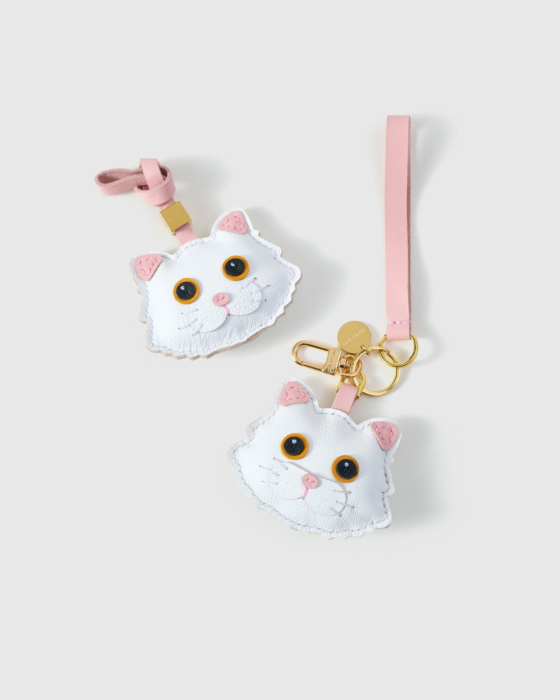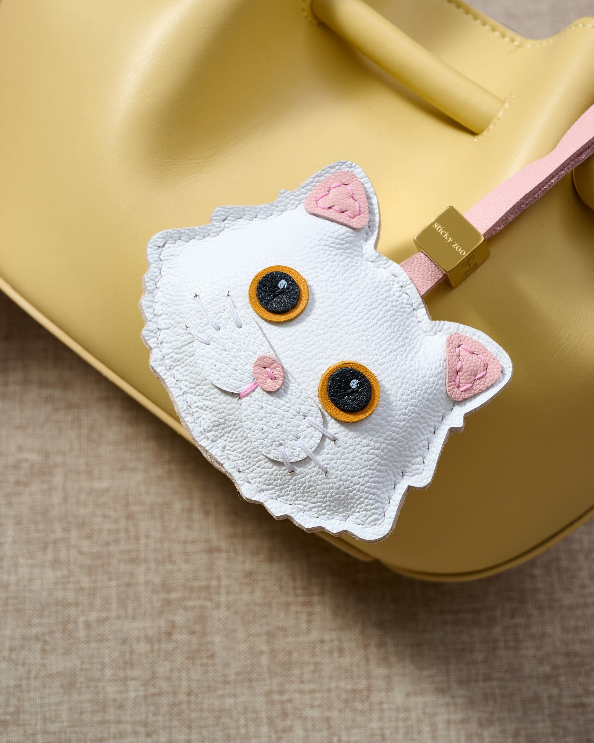 The MAINE COON CAT CHARM from STICKY ZOO® is meticulously handmade in French Alran sheepskin leather with hand-painted edges and soft pink detailing. Designed to transition from leather bag charm to keychain in seconds, it’s a collectible keepsake for every cat lover’s style story.