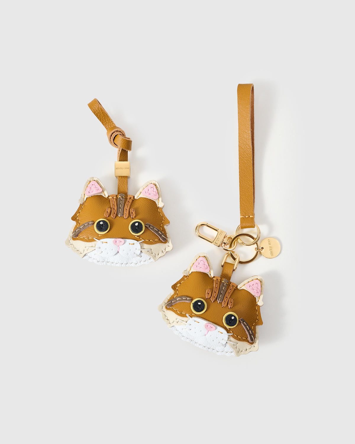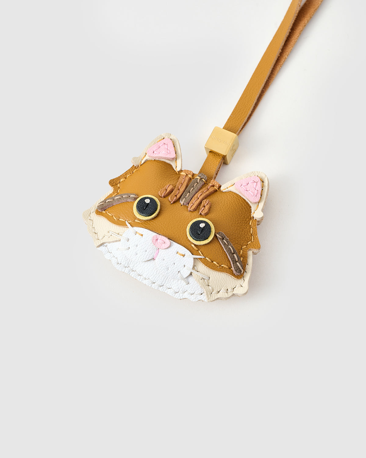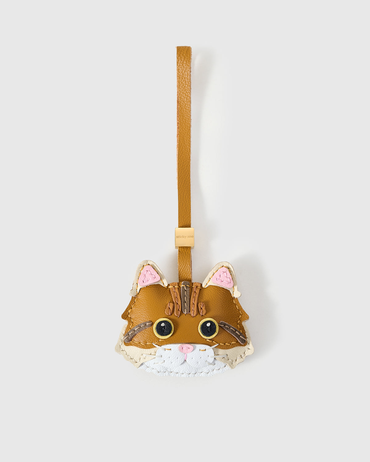 | Hook & Hardware | Camel leather strap loop with engraved STICKY ZOO® gold cube; 18K gold clip engraved with the STICKY ZOO® logo |