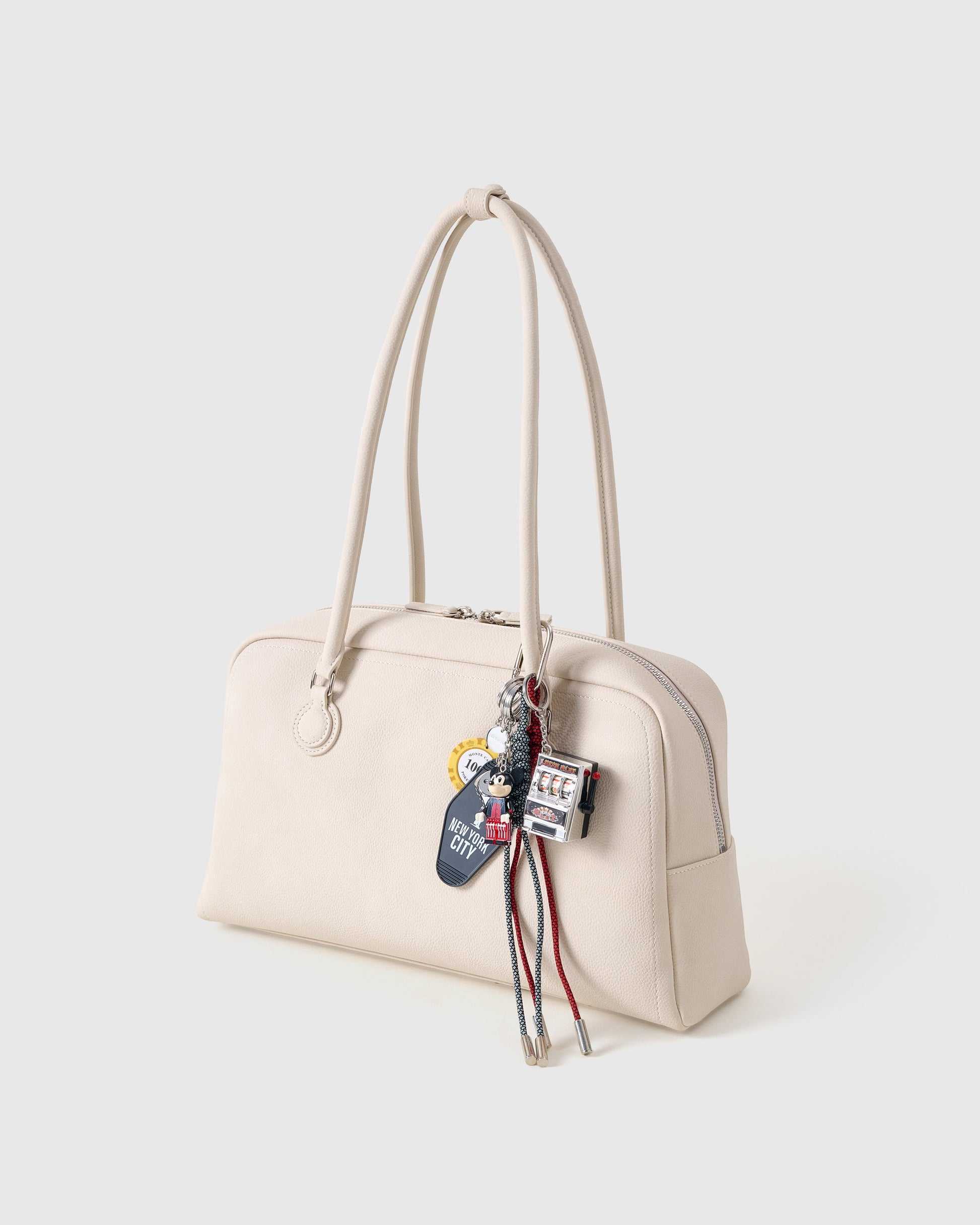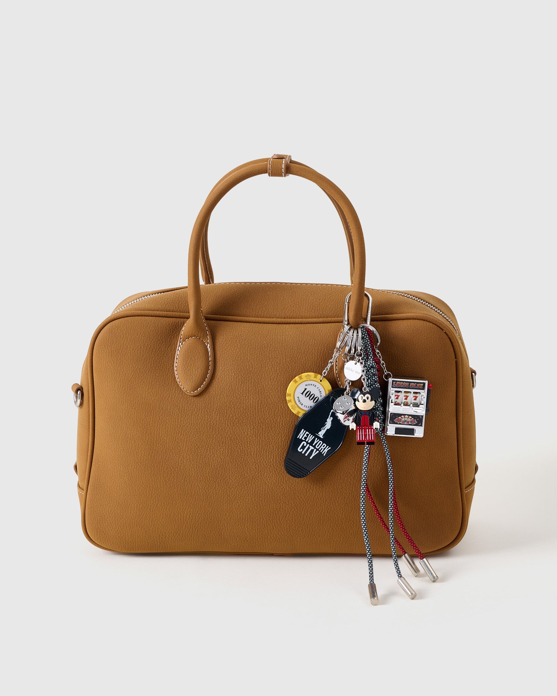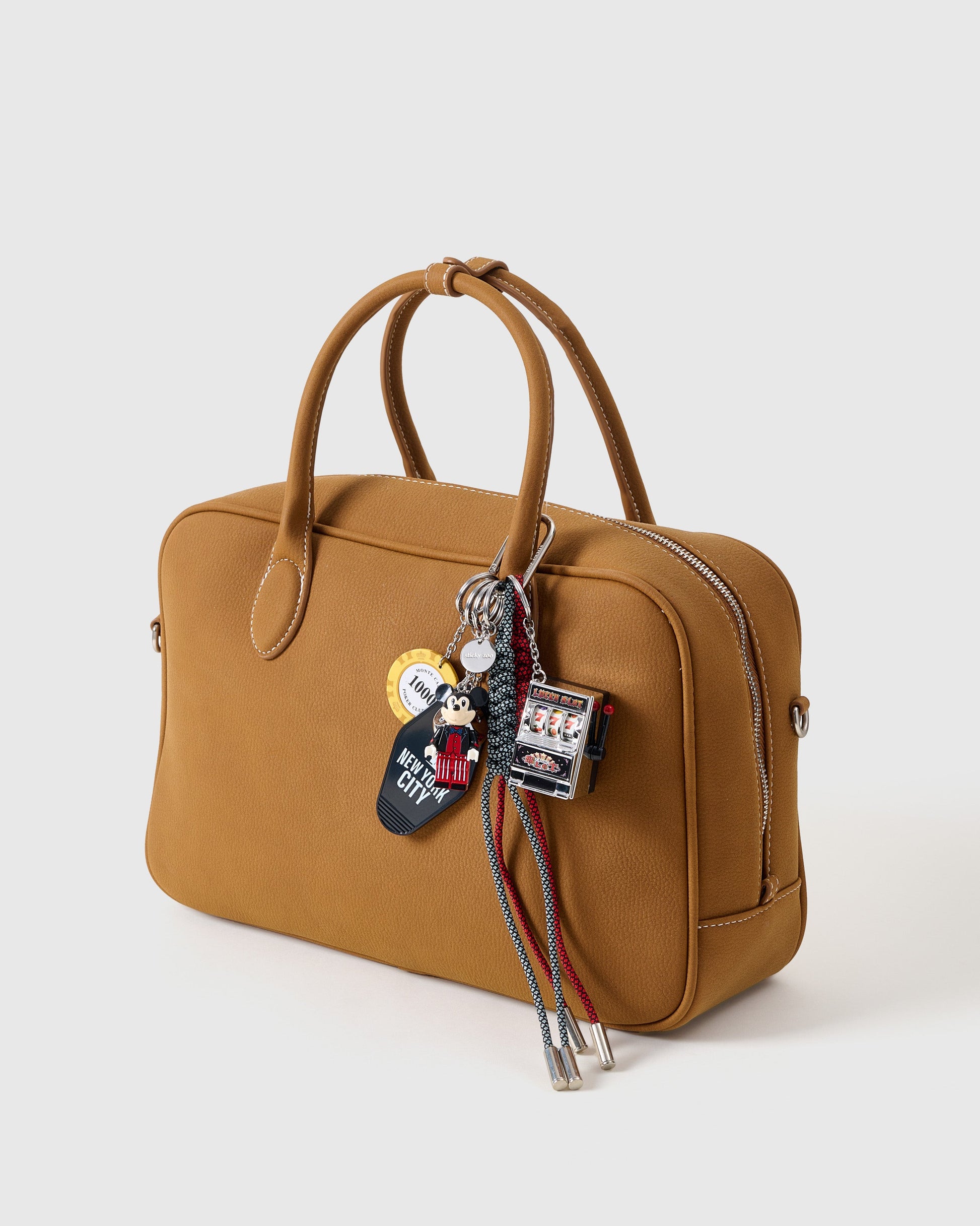 The LUCKY SLOT STACK CHARM captures the lights and hype of Vegas with a playable slot machine charm, complete with pull lever. Paired with a tuxedo mouse figure, a shiny casino dice, a yellow 1000-point chip, and a “New York City” motel tag, this charm celebrates bold wins and city dreams.