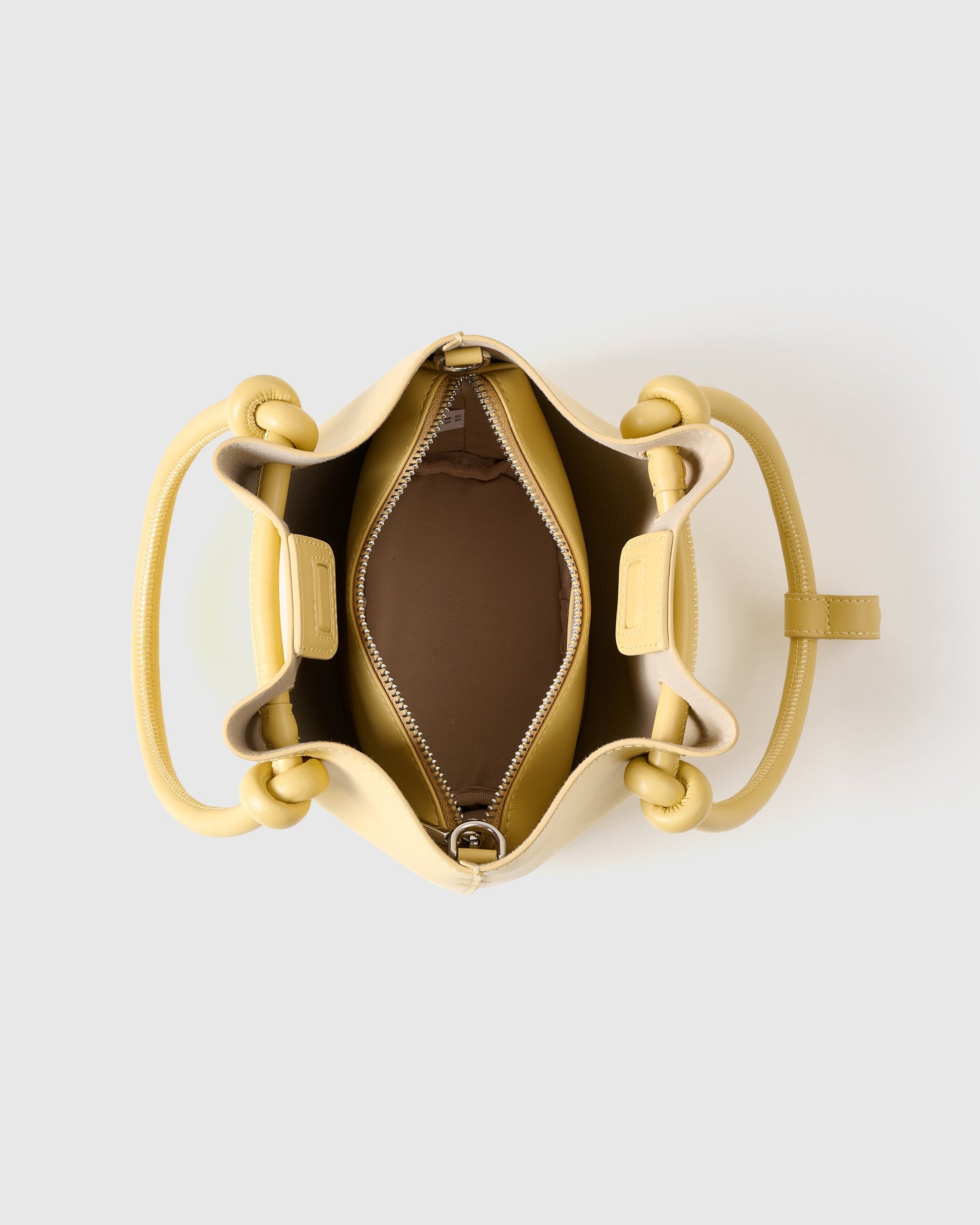 The Mini Bucket Bag blends playful charm with everyday practicality. Featuring distinctive knotted handles and a compact silhouette, it’s your ideal companion, available in vibrant pink and classic brown.