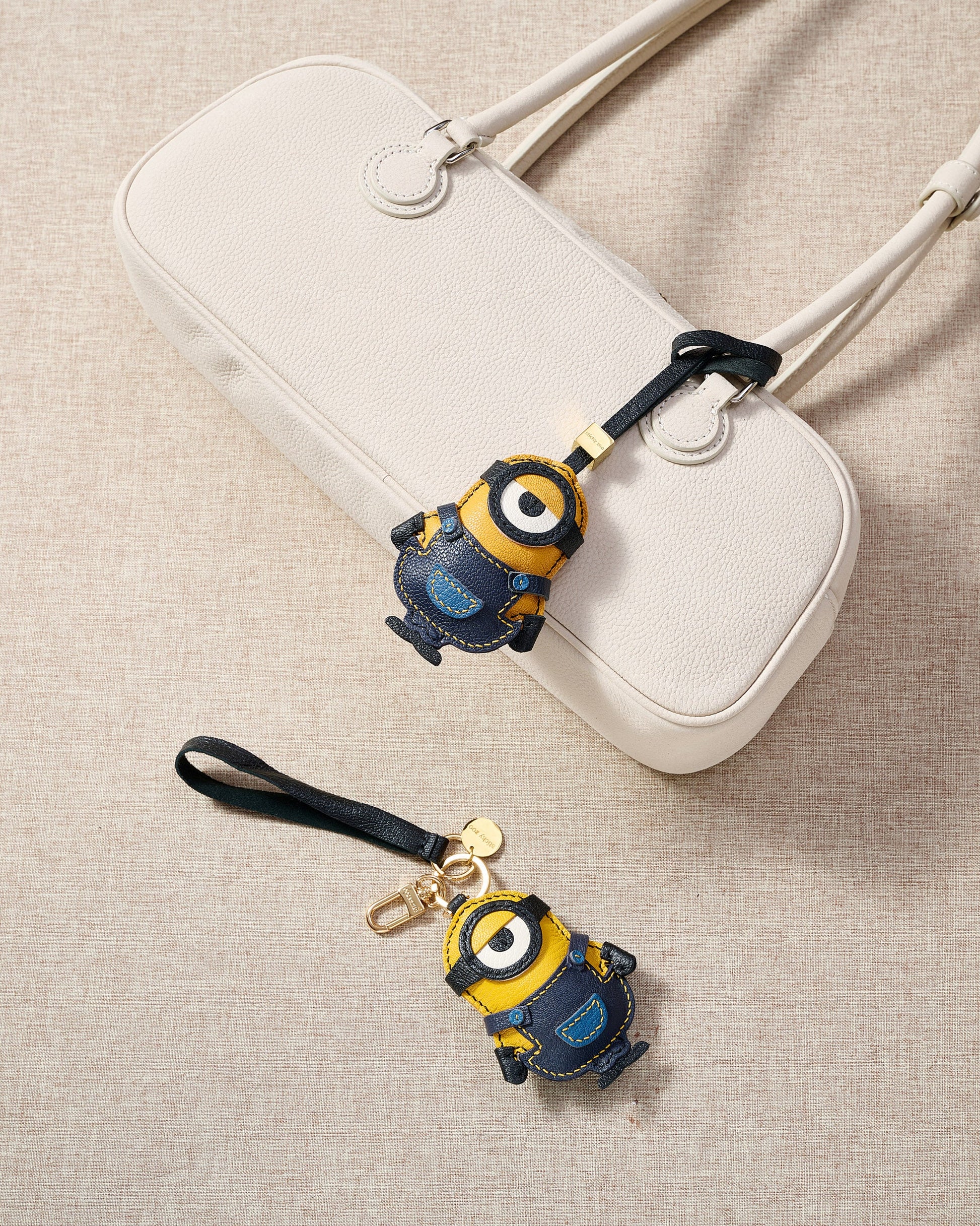 The MINION CHARM from STICKY ZOO is handcrafted from French Alran leather with contrast navy stitching and layered panels that bring this pop-culture icon to life. Designed to shift effortlessly from bag charm to keychain, it’s equal parts collectible and conversation piece.