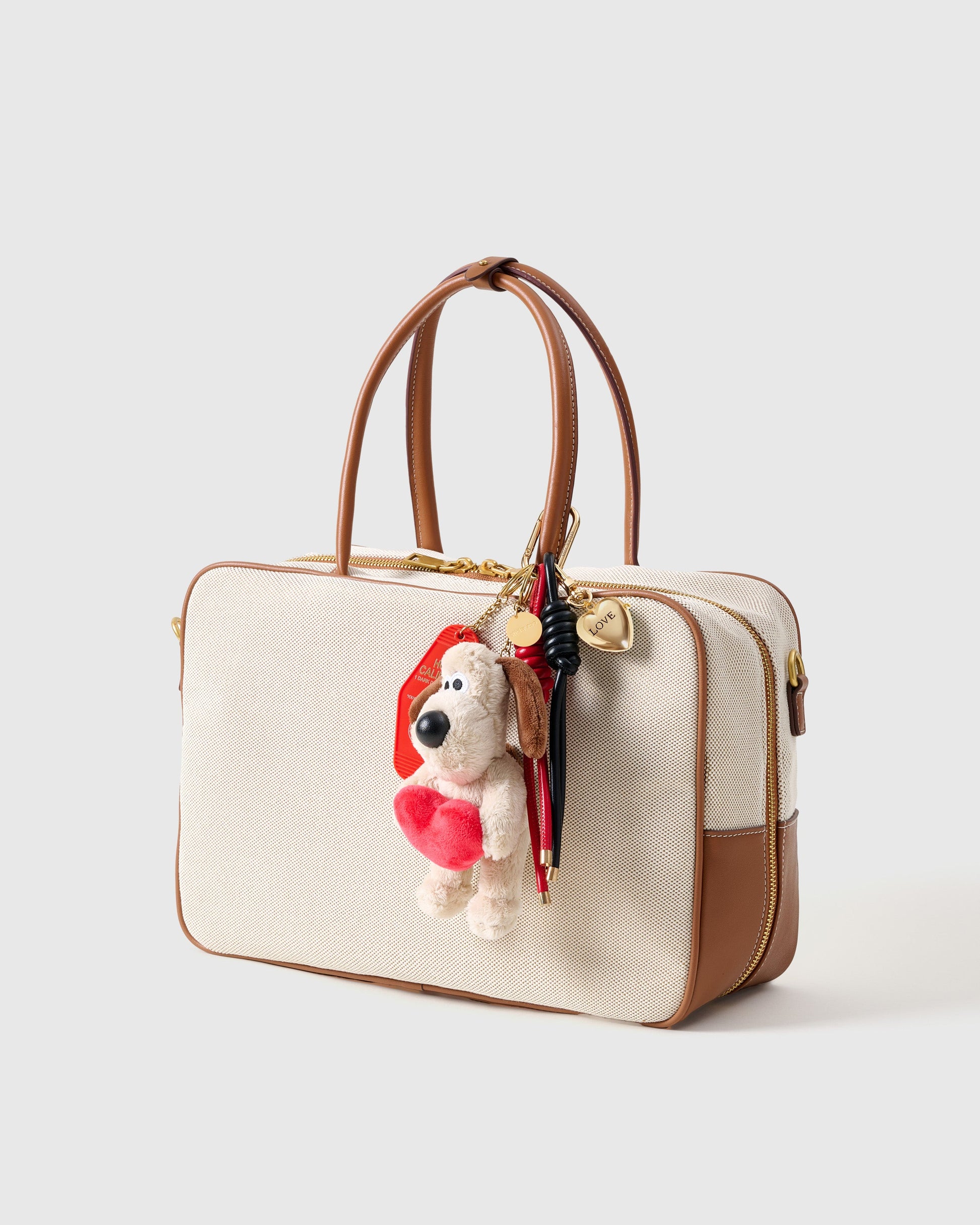 MITO POP CRUSH STACK CHARM isn't just a plush pup—he’s your new crush. Soft, squishy, and adorably devoted, Mito proudly holds a plush velvet heart, delivering a sweet message of love. Paired with bold red-and-black faux leather ropes, a signature Hotel California key tag, and a functional, gold-plated heart-shaped timepiece that reveals a real ticking watch, this charm is equal parts playful and practical.