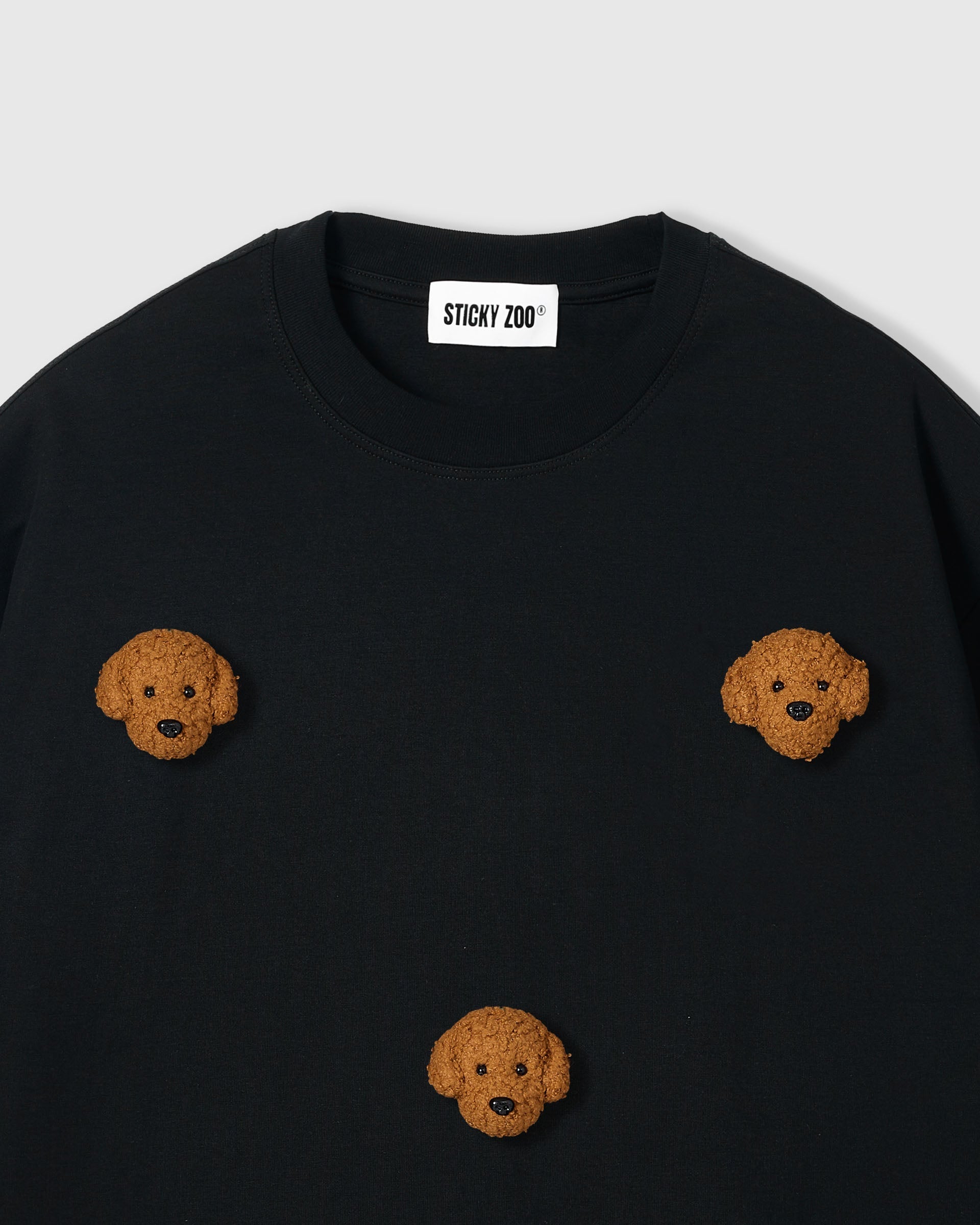Playful by design, comforting by nature – Soft, plush poodle faces sit neatly across the chest and sleeves, each one slightly unique, like a tiny friend you carry through the day. The modern oversized silhouette keeps the vibe effortless and flattering while the dense cotton keeps its shape.