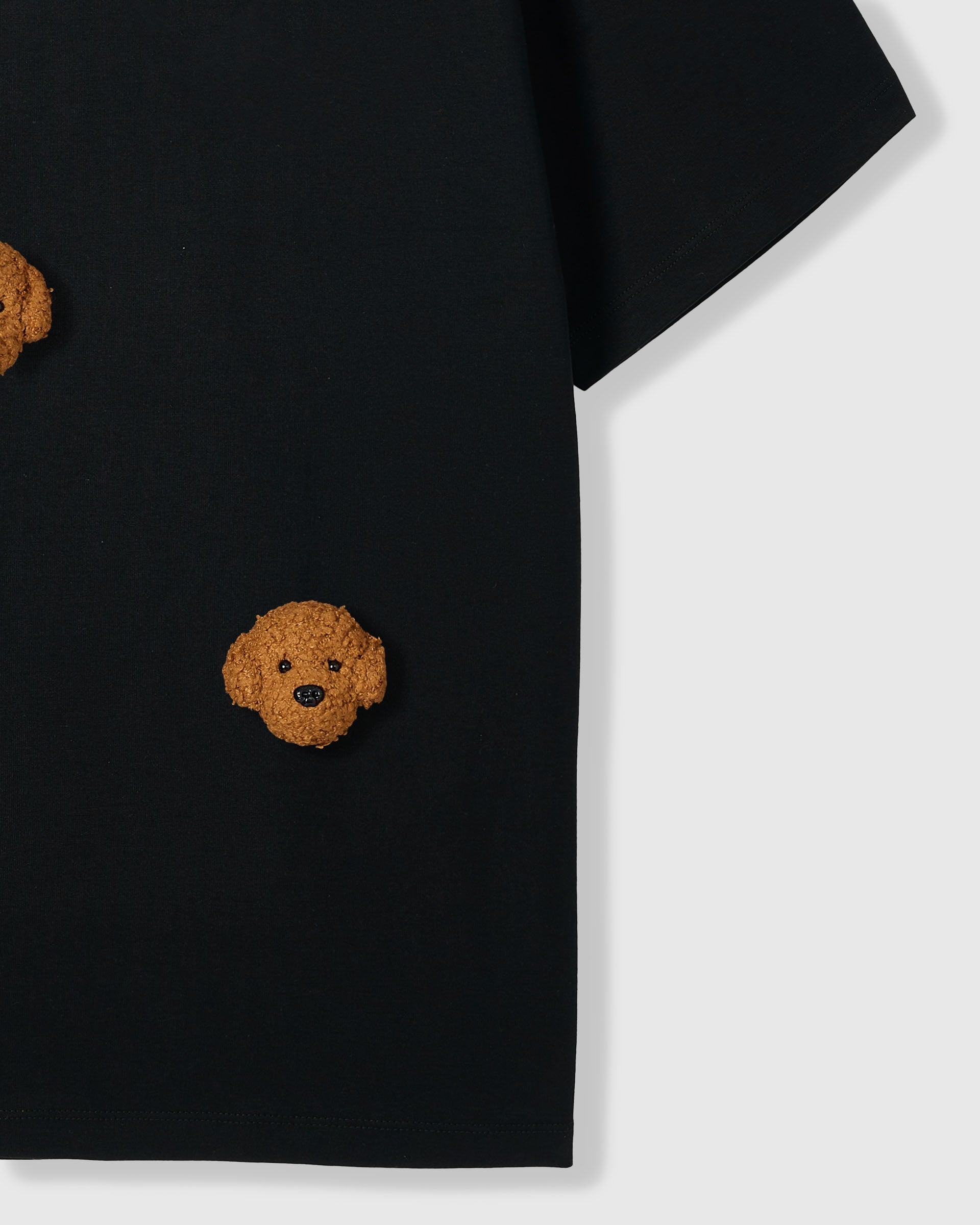 The POODLE PARADE T-SHIRT wraps cheerful character in serious comfort. Crafted from premium 230gsm cool-touch cotton, it drapes with an easy, relaxed feel while the plush poodle faces—each individually handmade and stitched—bring warmth and whimsy to your look. It’s the kind of piece people notice, then smile at.