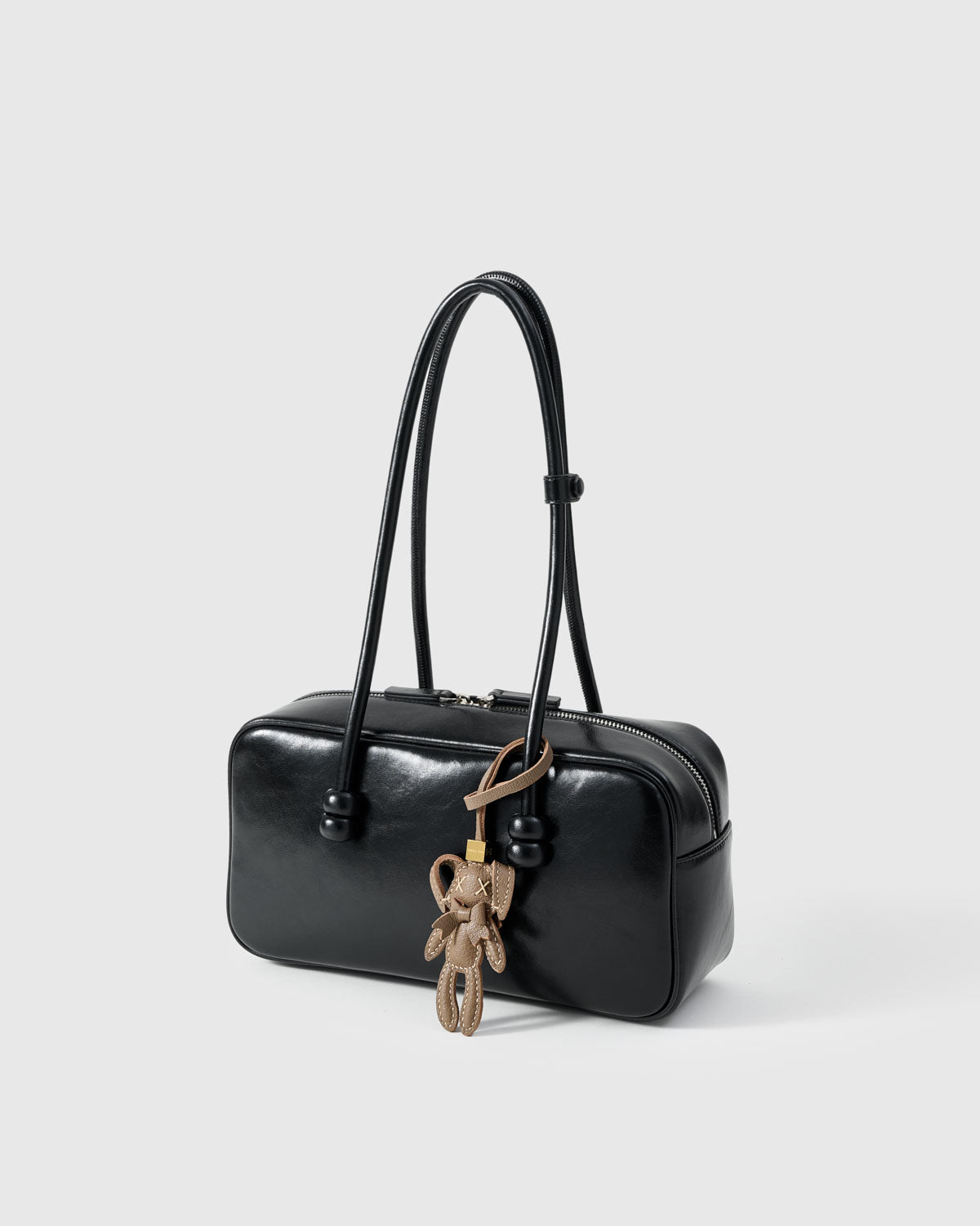 Available in taupe, black, and white leather, each charm is hand-cut, hand-stitched, and stuffed to create a soft 3D silhouette. The fine stitching and playful proportions make it an eye-catching accent for any bag or keychain — sweet yet stylishly subversive.