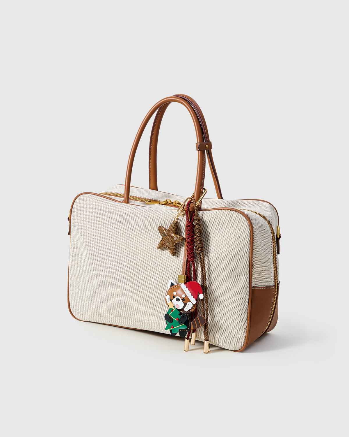 Holiday cheer, clipped. A pavé star, Santa‑hat panda, and swingy cords turn any carry into a wrapped‑with‑a‑bow moment—instant compliments, zero effort.
