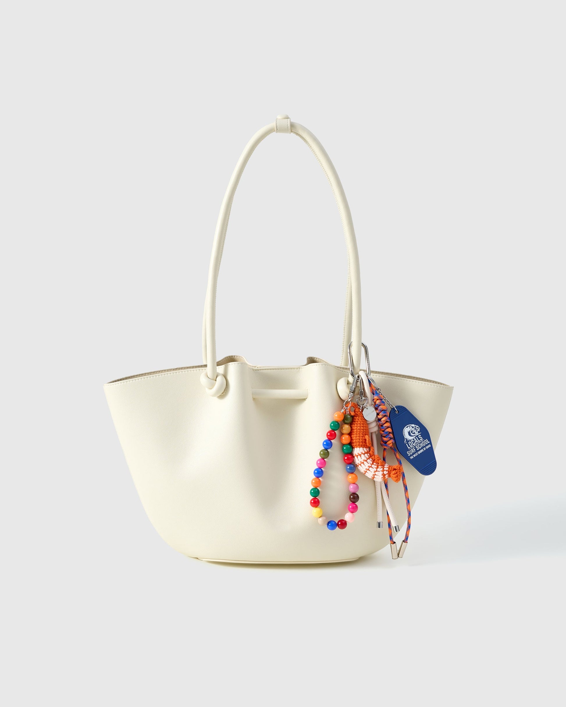 RIVIERA SHRIMP SURF STACK CHARM – RAINBOW BEAD EDITION is bright, playful, and quietly refined. Designed with vibrant beads and orange-blue paracord accents, it brings a sunny pop and elegant movement to any silhouette. The hand-crocheted shrimp adds artisan warmth, while the deep-blue tag gives it that members-only beach club wink.