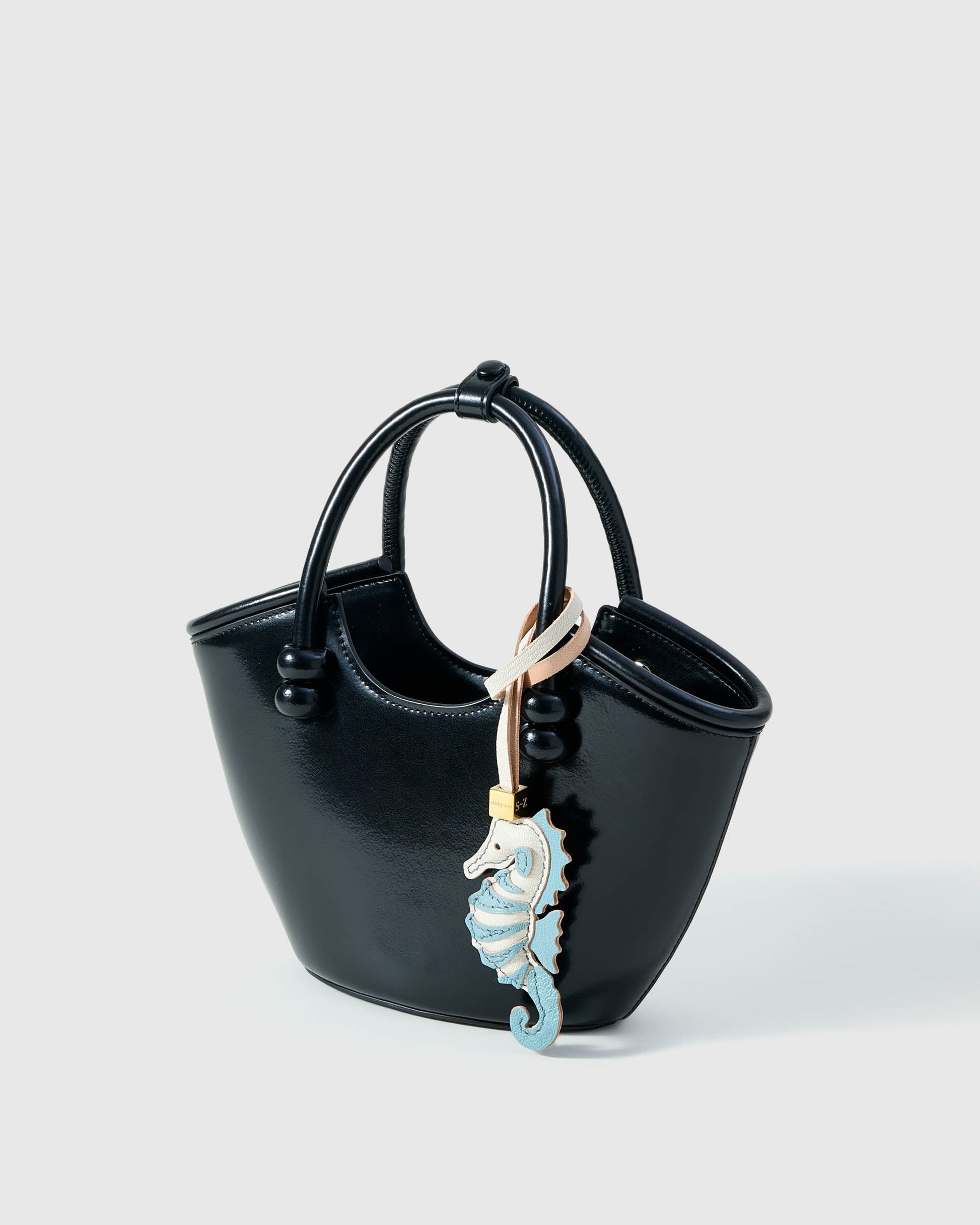 A pocket-sized ocean parade. The SEAHORSE WAVE WIGGLE CHARM shimmies with every step—cute, cheeky, and secretly classy in sculpted leather.