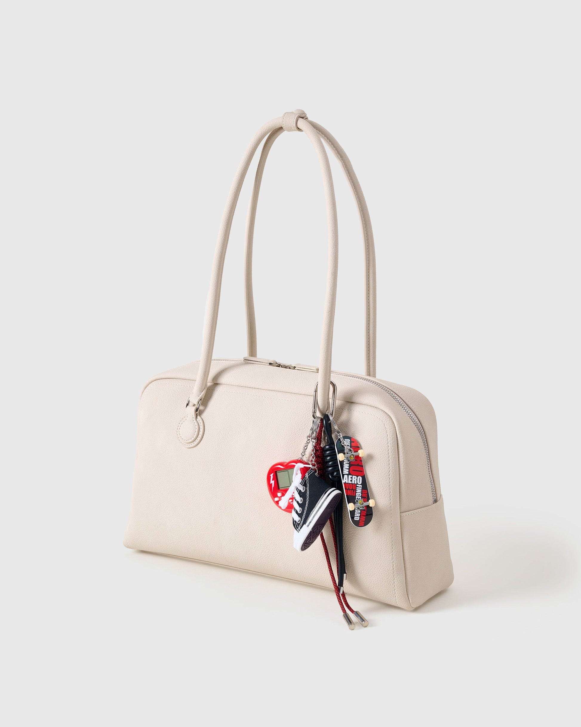 SKATEBYTE STACK CHARM blends nostalgia with real craft. The standout piece: a mini skateboard carved from real wood, hand-finished and assembled for flick-ready detail. It's paired with a canvas sneaker charm, pixel game heart console, and double-wrapped paracord ropes to create a charm stack that rides as hard as you do.