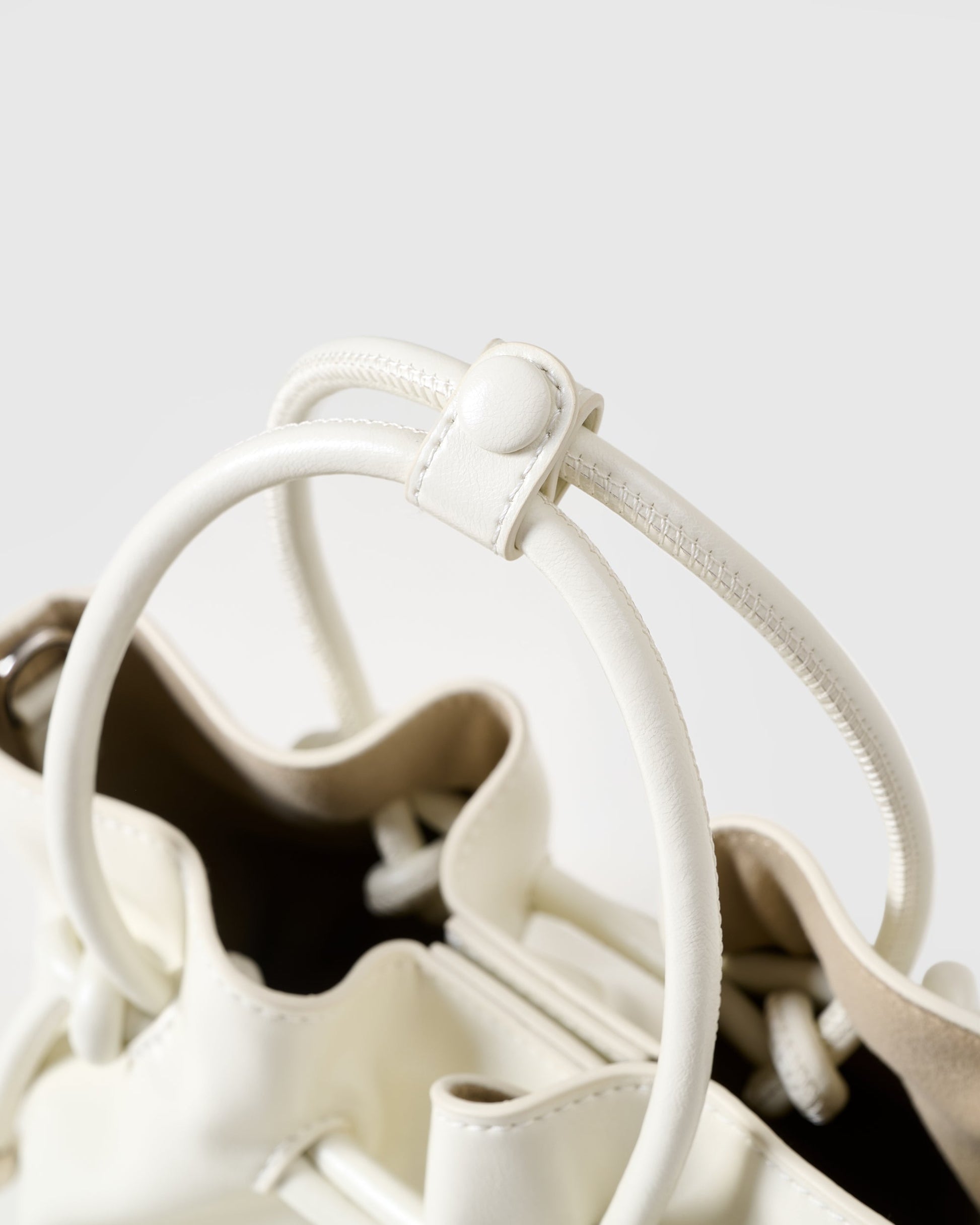 THE SOHO VEGAN LEATHER MINI TOTE is bold, chic, and confidently stylish. Crafted from premium vegan leather with a luxurious feel, its signature drawstring detail with polished stainless steel accents adds a playful twist to classic sophistication. Available in two delicate shades—soft cream and elegant ivory—this mini tote includes an adjustable, detachable long strap for versatile, hands-free wear.