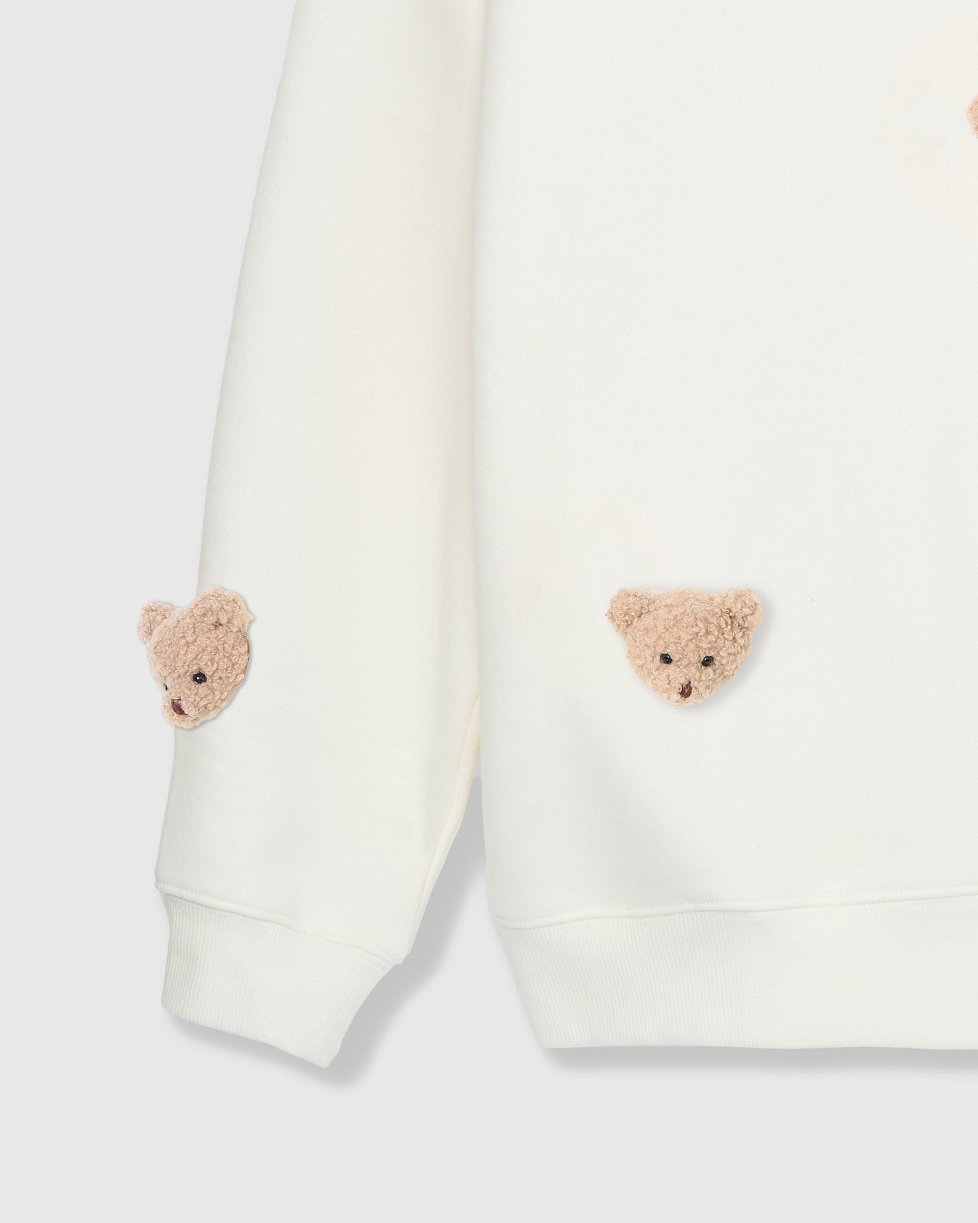 Sticky Zoo® Bear Sweater is a cozy essential reimagined with playful flair. Crafted from 100% premium cotton, it offers oversized ease without sacrificing style. Dozens of stitched teddy bear heads pop off the front and sleeves — not printed, but real plush. It's comfy, it's bold, and it turns every errand into a runway.