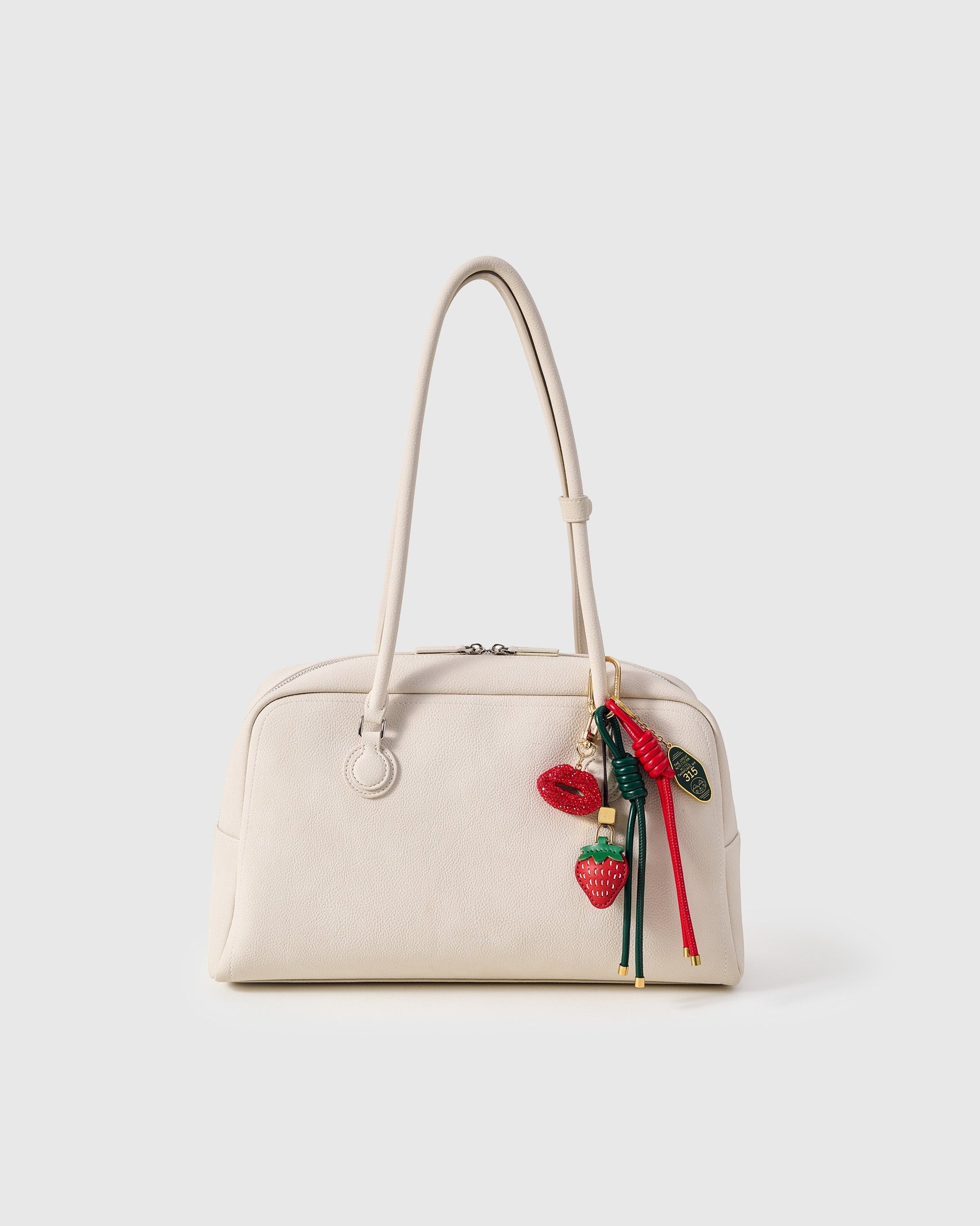 - Tactile leather strawberry — the cute detail that invites “where did you get it?”
