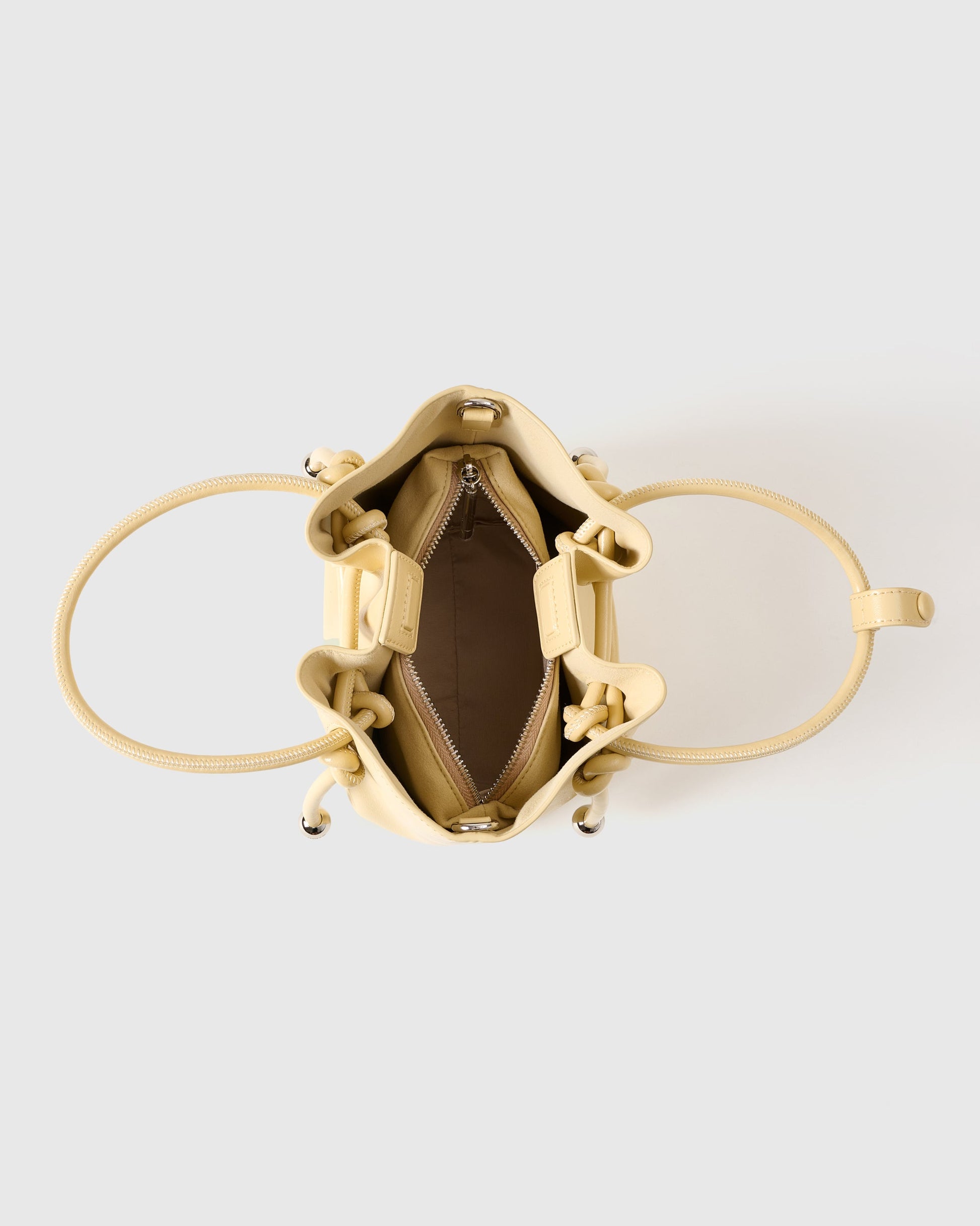THE SOHO VEGAN LEATHER MINI TOTE is bold, chic, and confidently stylish. Crafted from premium vegan leather with a luxurious feel, its signature drawstring detail with polished stainless steel accents adds a playful twist to classic sophistication. Available in two delicate shades—soft cream and elegant ivory—this mini tote includes an adjustable, detachable long strap for versatile, hands-free wear.