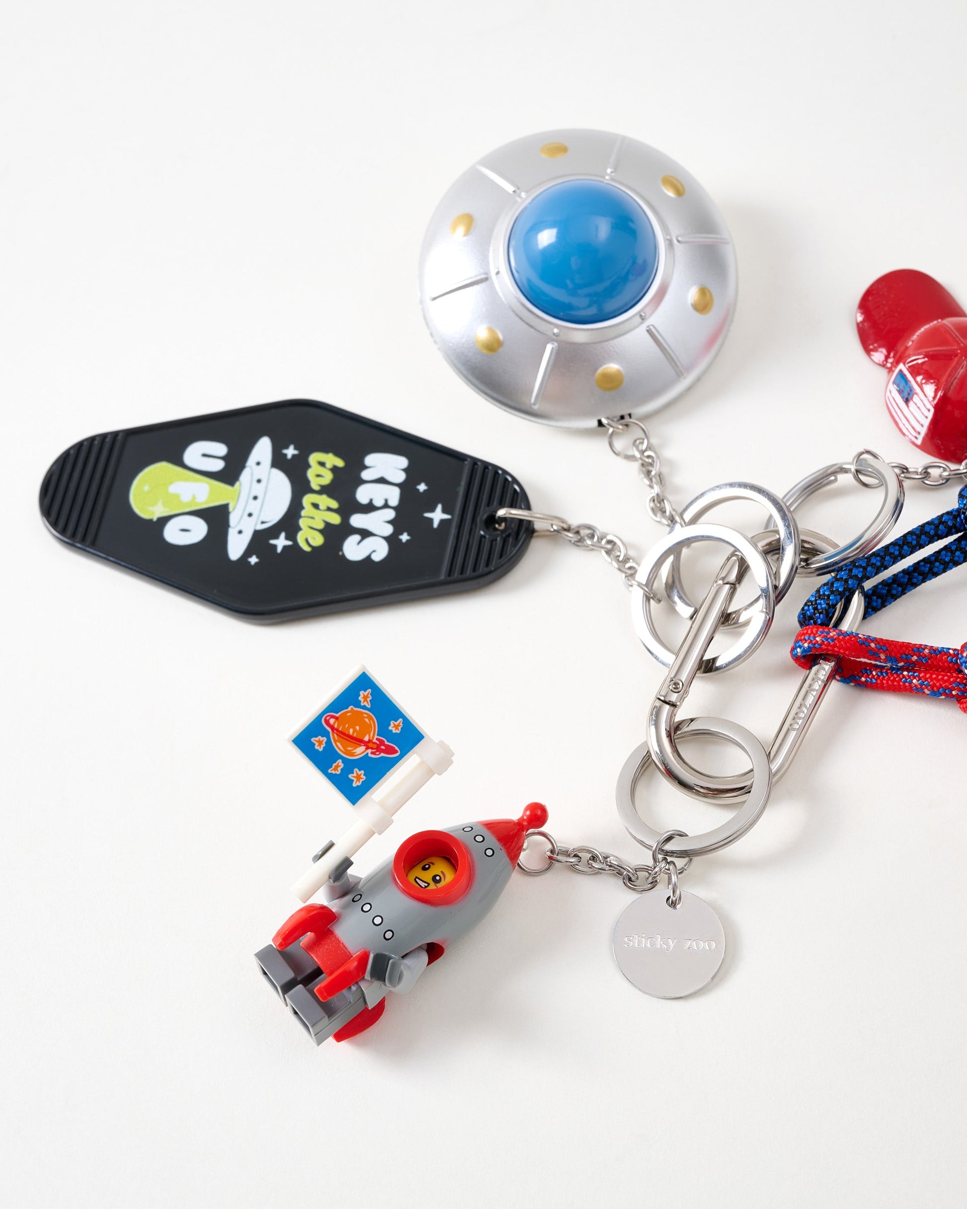 This is not just a charm. It’s your cosmic boarding pass. The UFO Odyssey Stack Charm is a playful rebel, geared for orbit and packed with interstellar cool. Designed with a metallic flying saucer, a red LEGO rocket pilot, and a cheeky “Keys to the UFO” tag, it’s a nod to every vintage sci-fi dream you ever had.